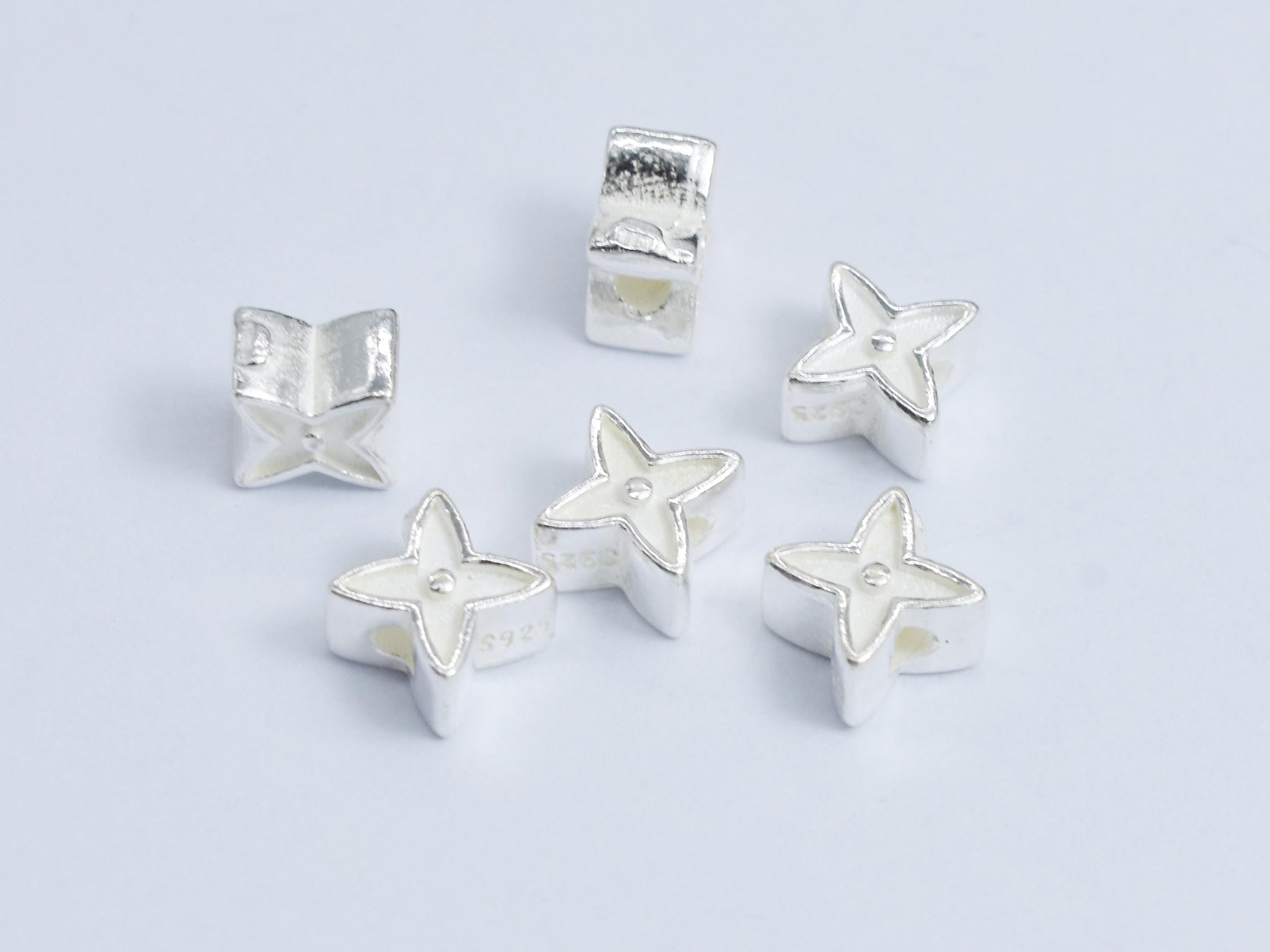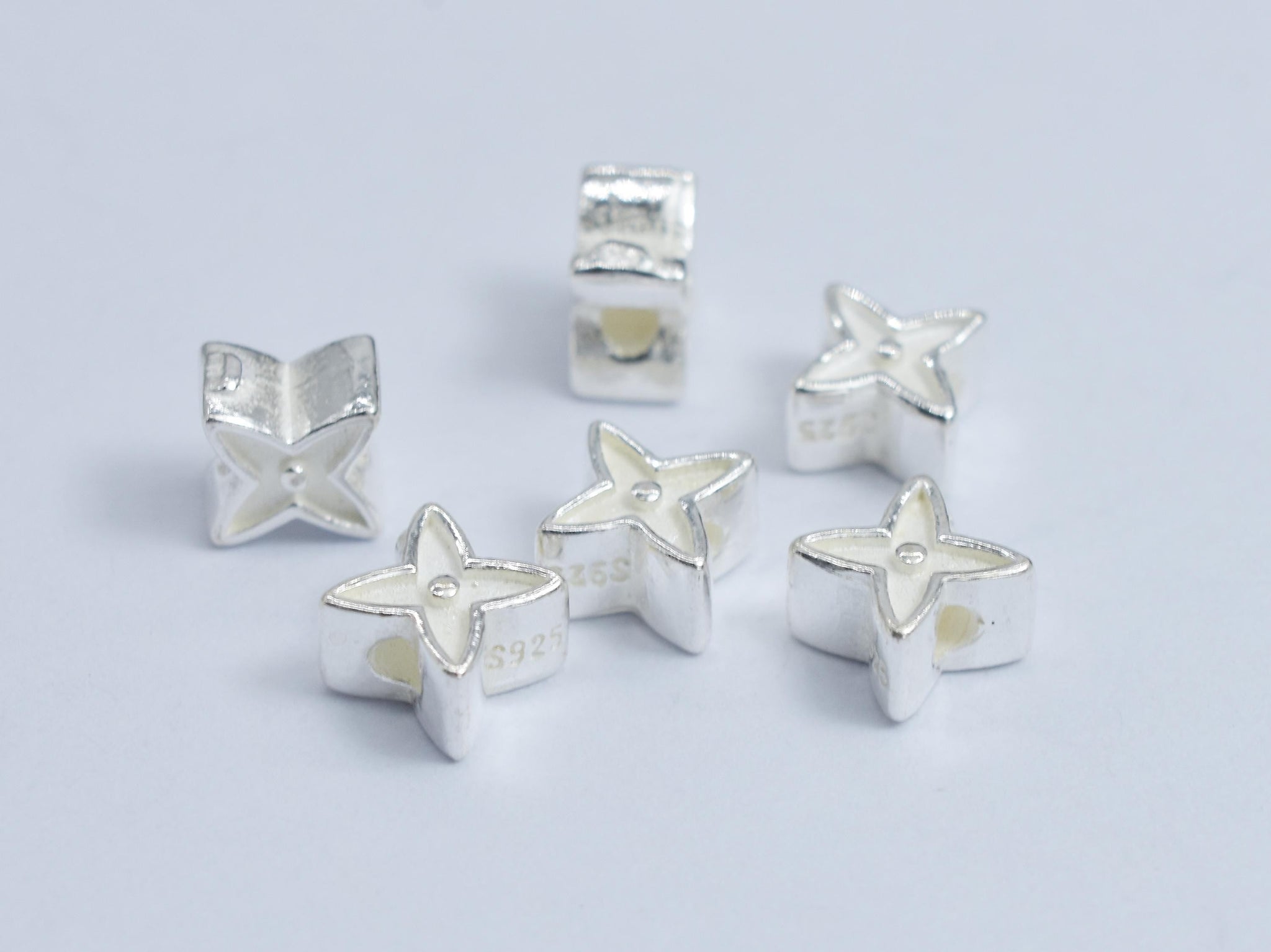 4pcs 925 Sterling Silver Beads, 6.5x6.5mm Four Pointed Star