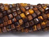 Tiger Eye, 3x3mm Faceted Cube Beads