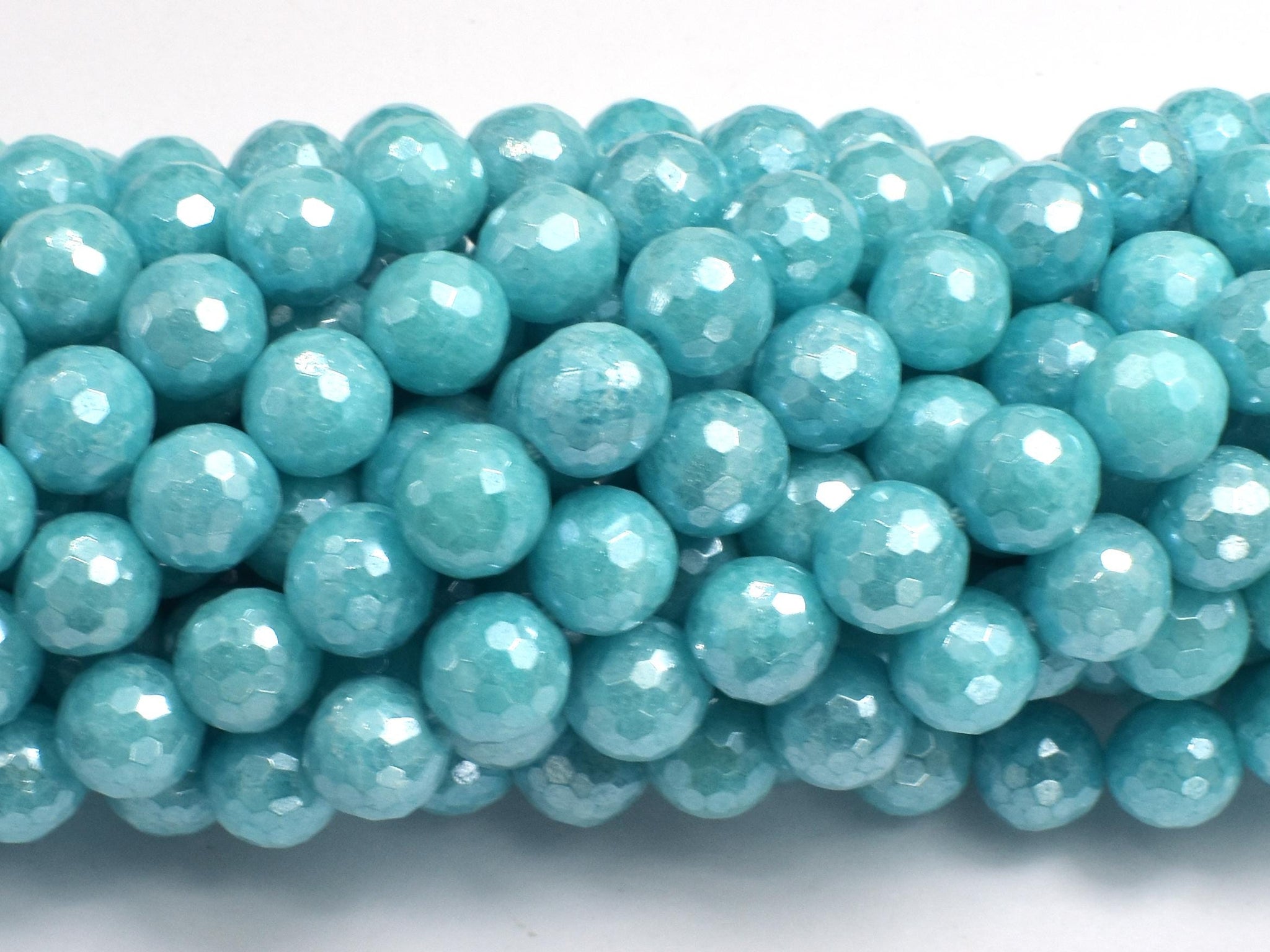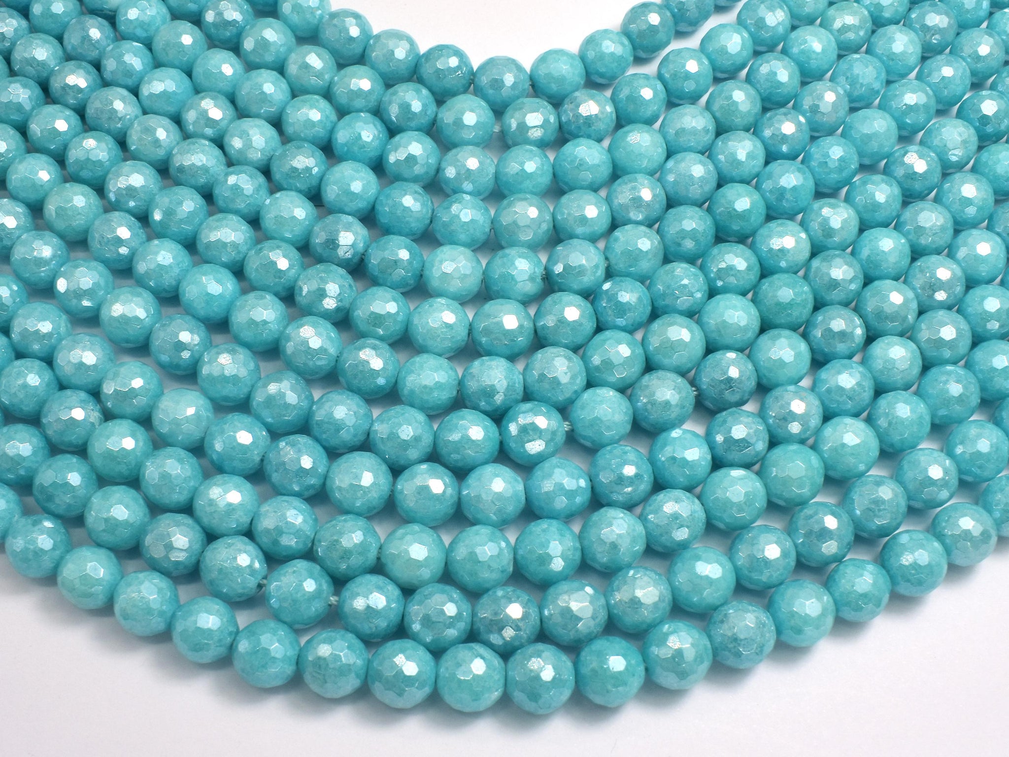Mystic Coated Jade - Amazonite color, AB Coated, 8mm Faceted Round
