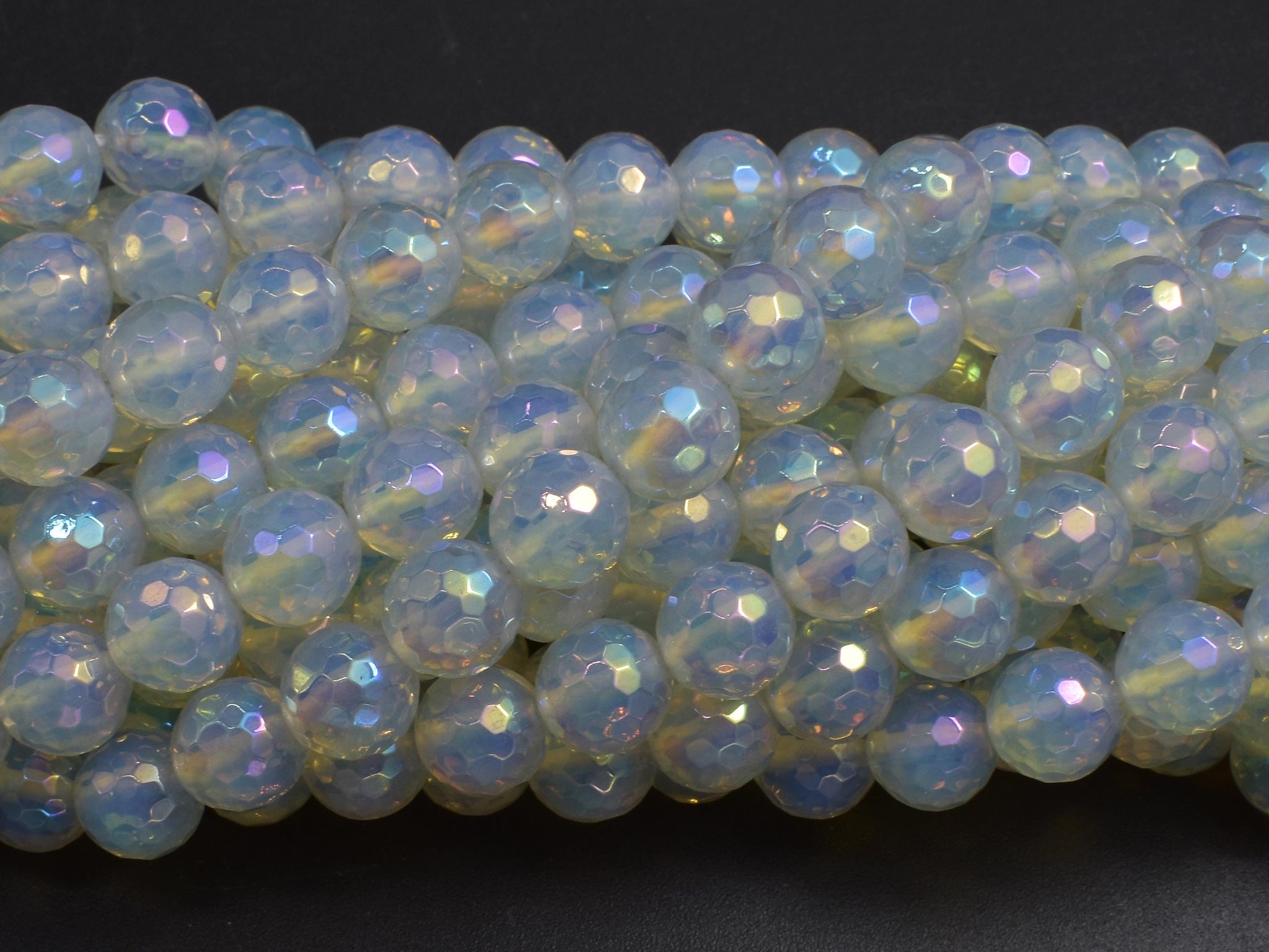 Mystic Coated White Opalite, AB Coated 8mm Faceted Round