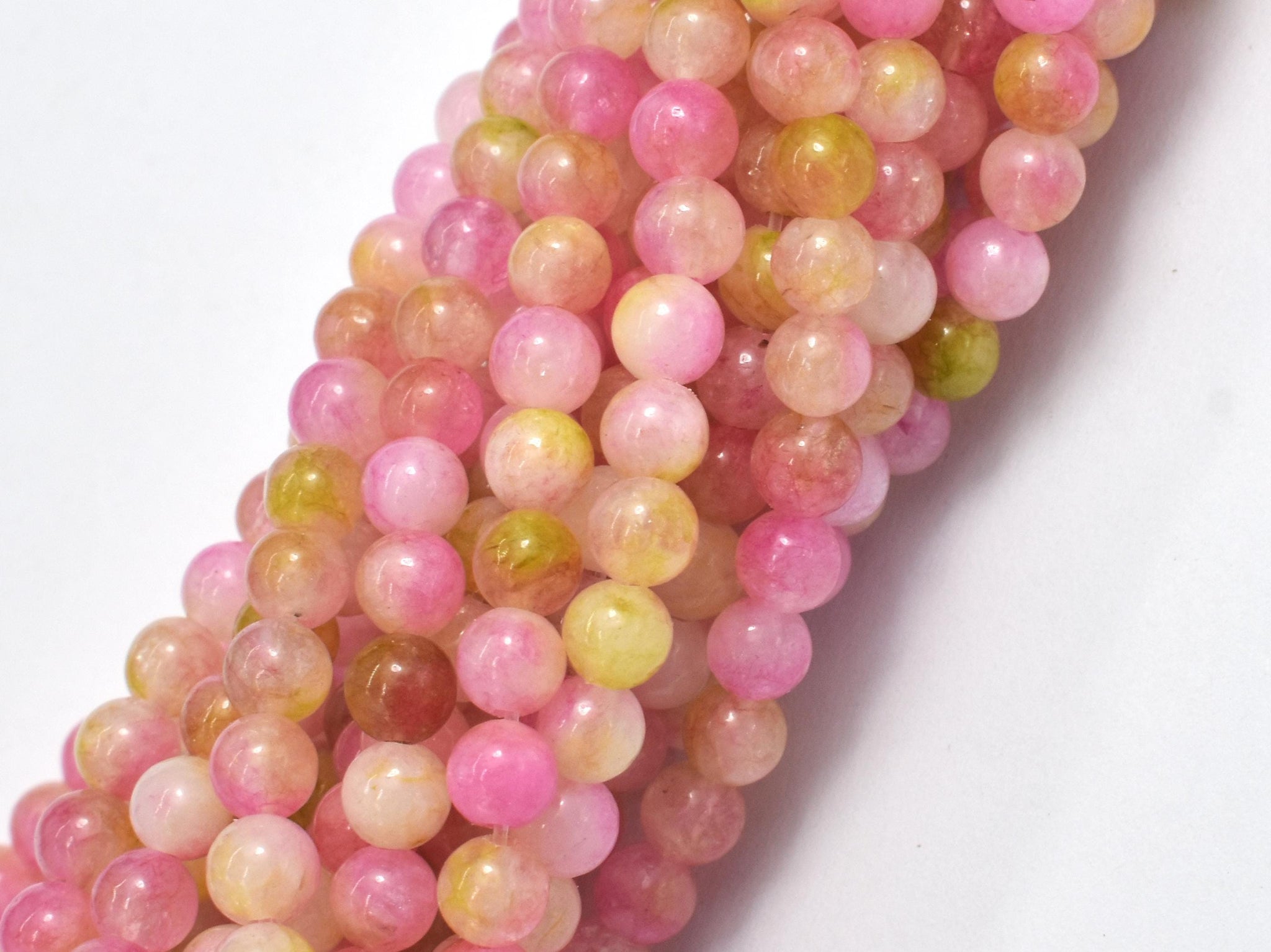 Jade - Pink & Yellow, 4mm (4.5mm) Round