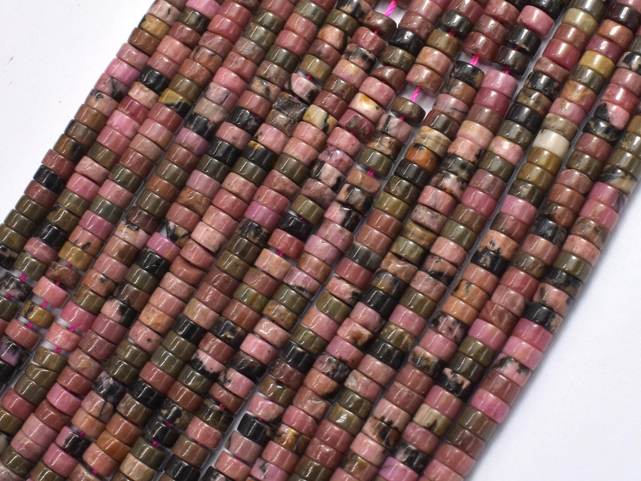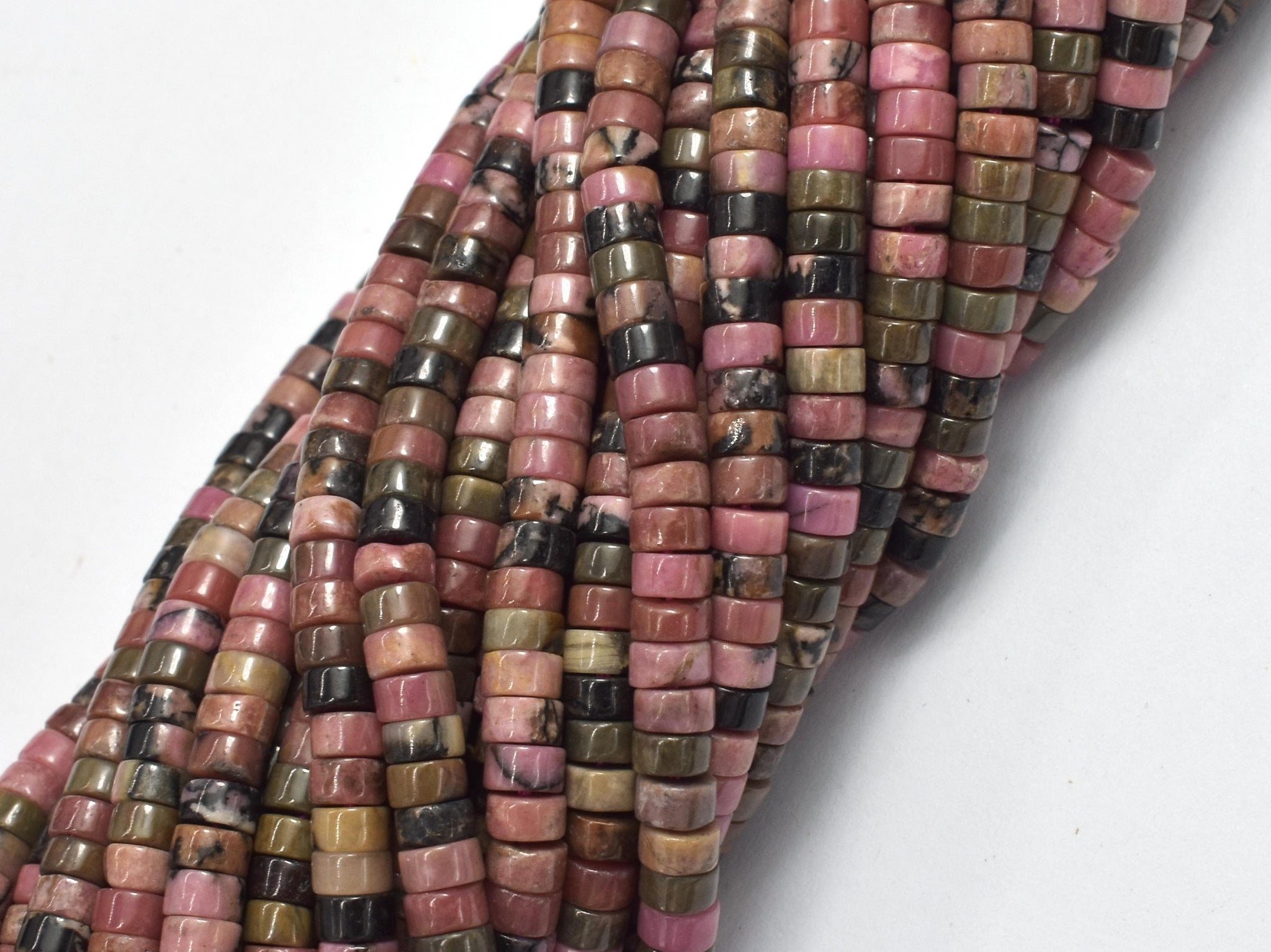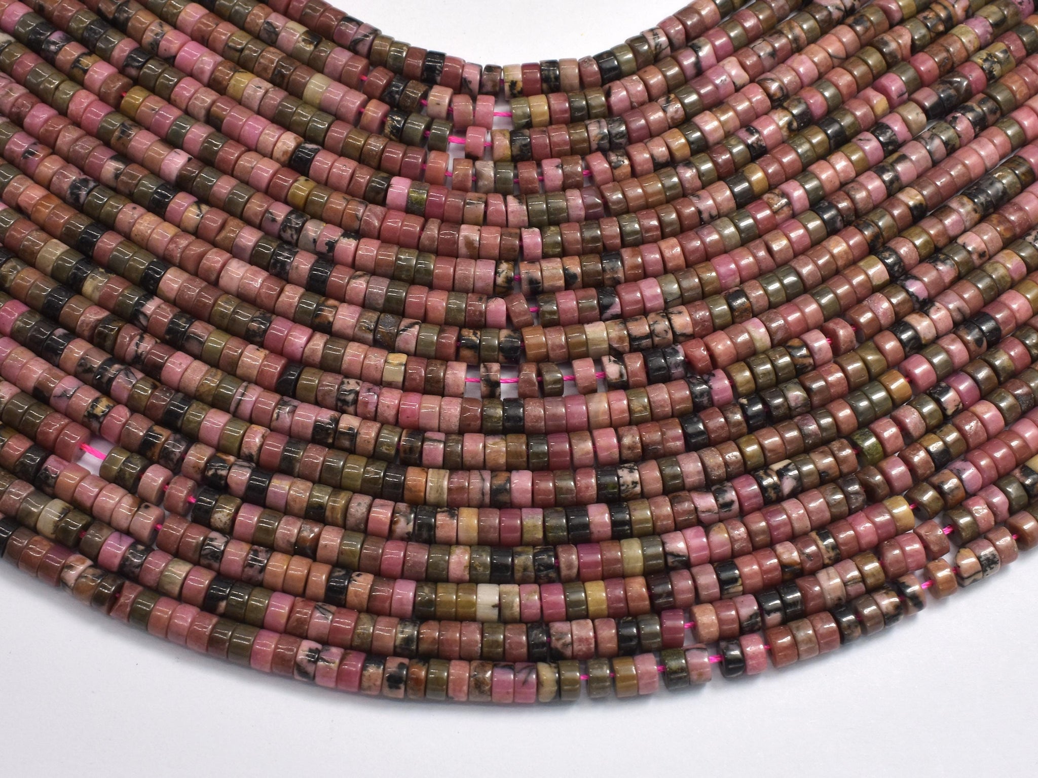 Name: Rhodonite, Approx. 2x4mm, Heishi Disc