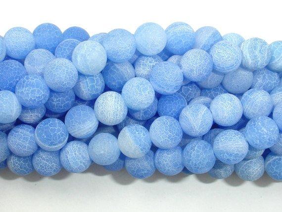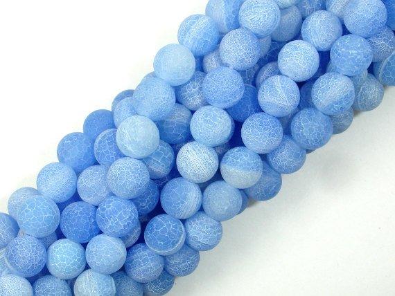 Frosted Matte Agate - Blue, 8mm Round Beads