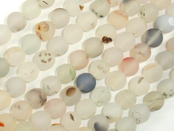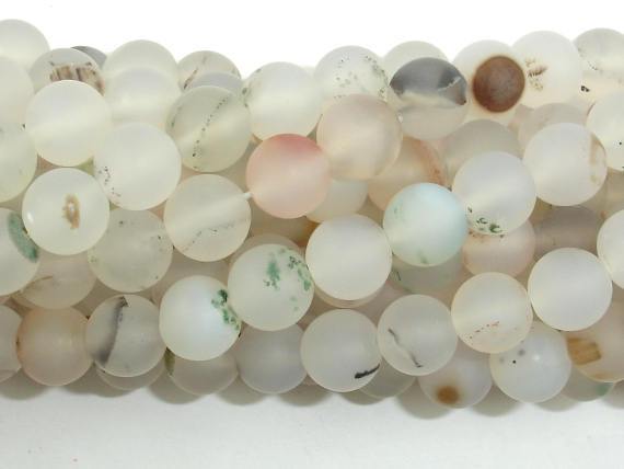 Frosted Matte Agate-White, Gray, 8mm Round Beads