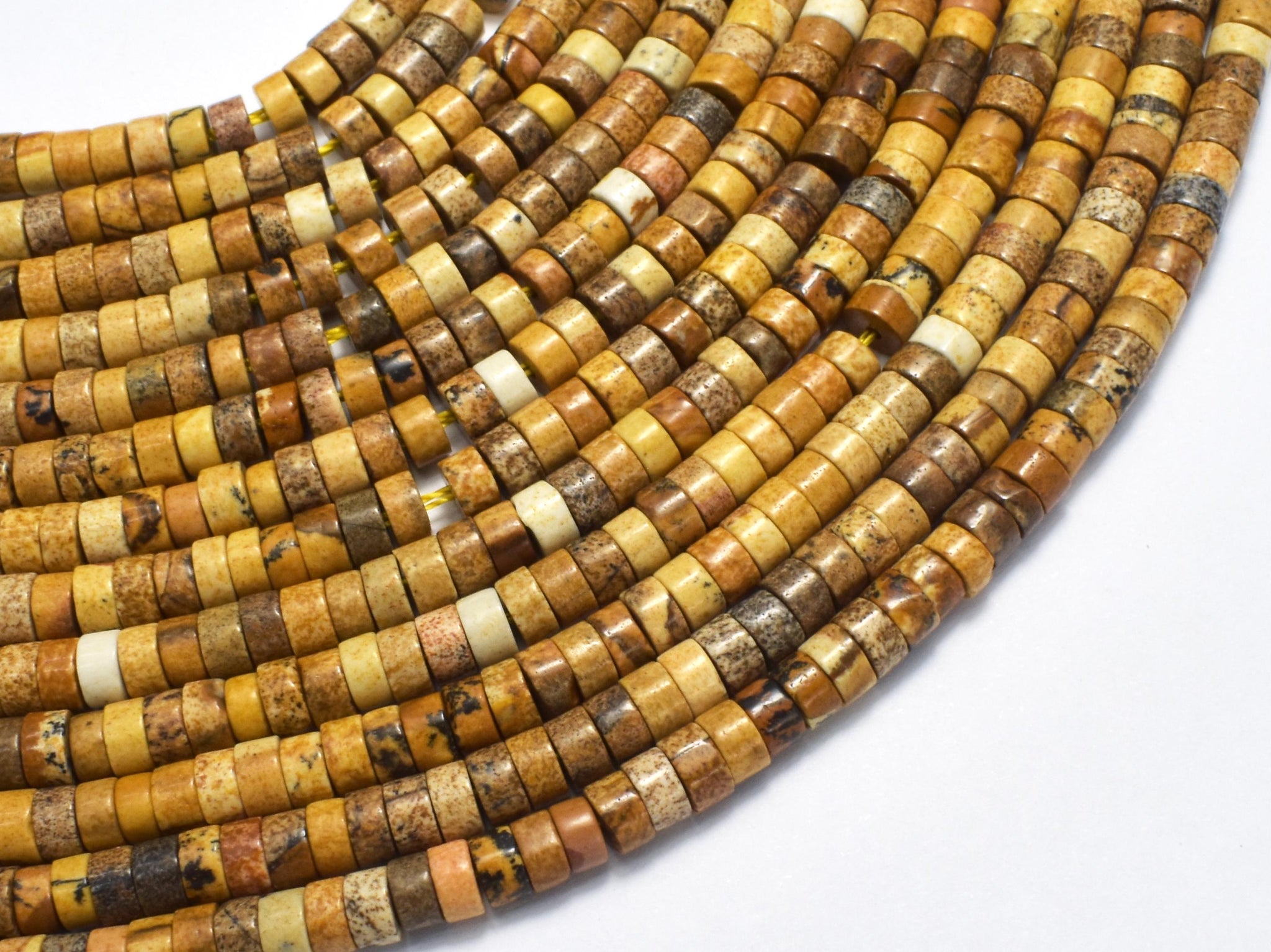 Picture Jasper, Approx. 2x4mm, Heishi Disc
