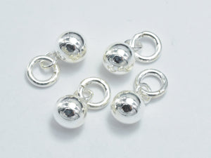 4pcs 925 Sterling Silver Charm, Ball Charm, 5mm Round Ball with 5mm Closed Jump Ring
