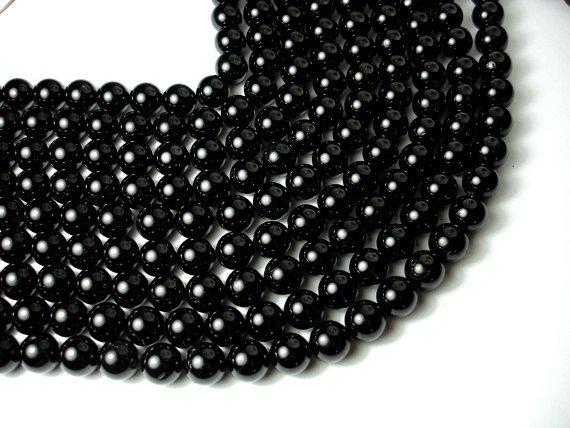 Black Tourmaline Beads, Round, 12mm