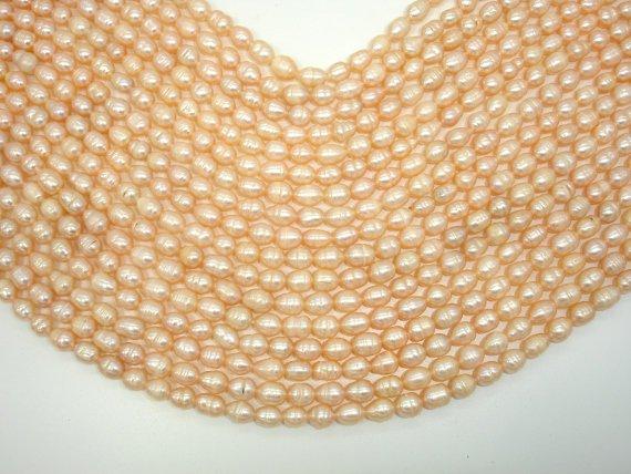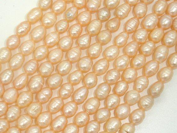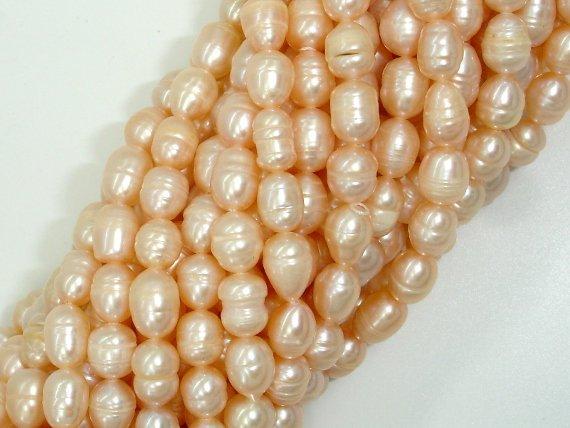Fresh Water Pearl Beads, Rice, Peach, 6x8mm