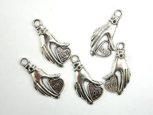 Hand Charms, Zinc Alloy, Antique Silver Tone 10pcs