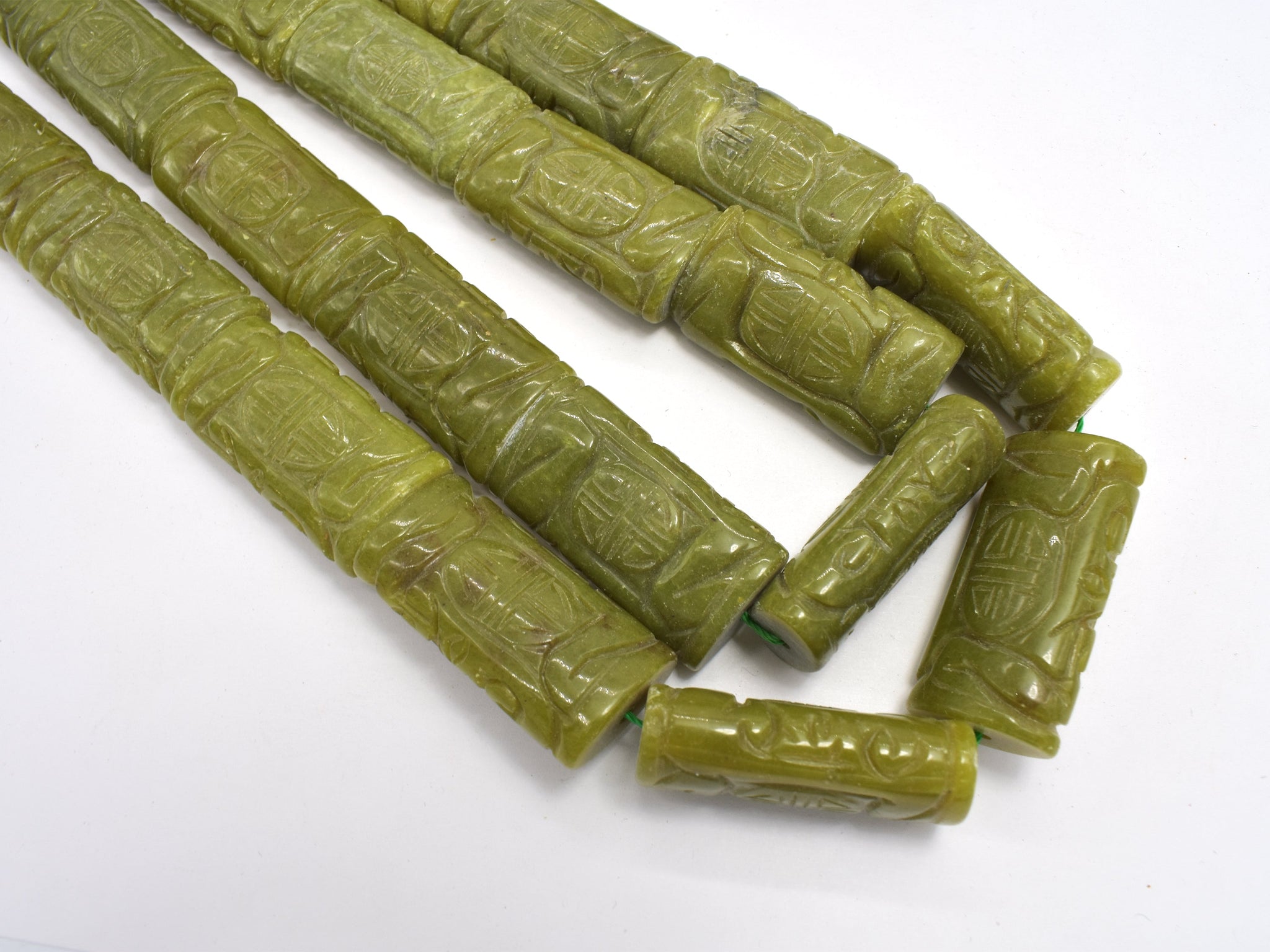 Jade Beads, 19x36mm, Flat Tube, Caved Jade