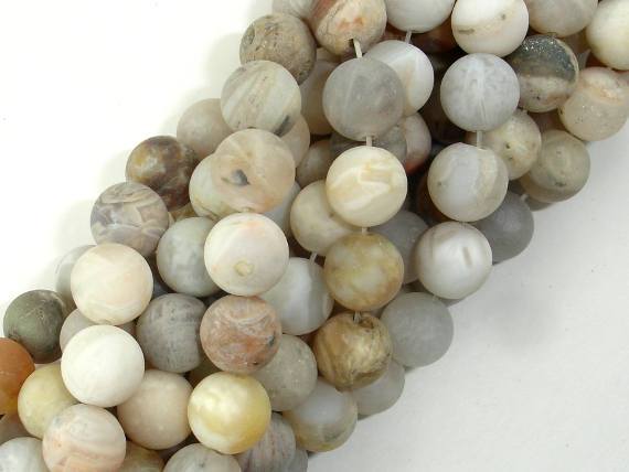 Matte Bamboo Leaf Agate, 10mm Round Beads