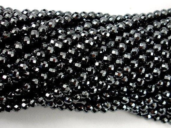 Hematite, 4mm Faceted Round Beads