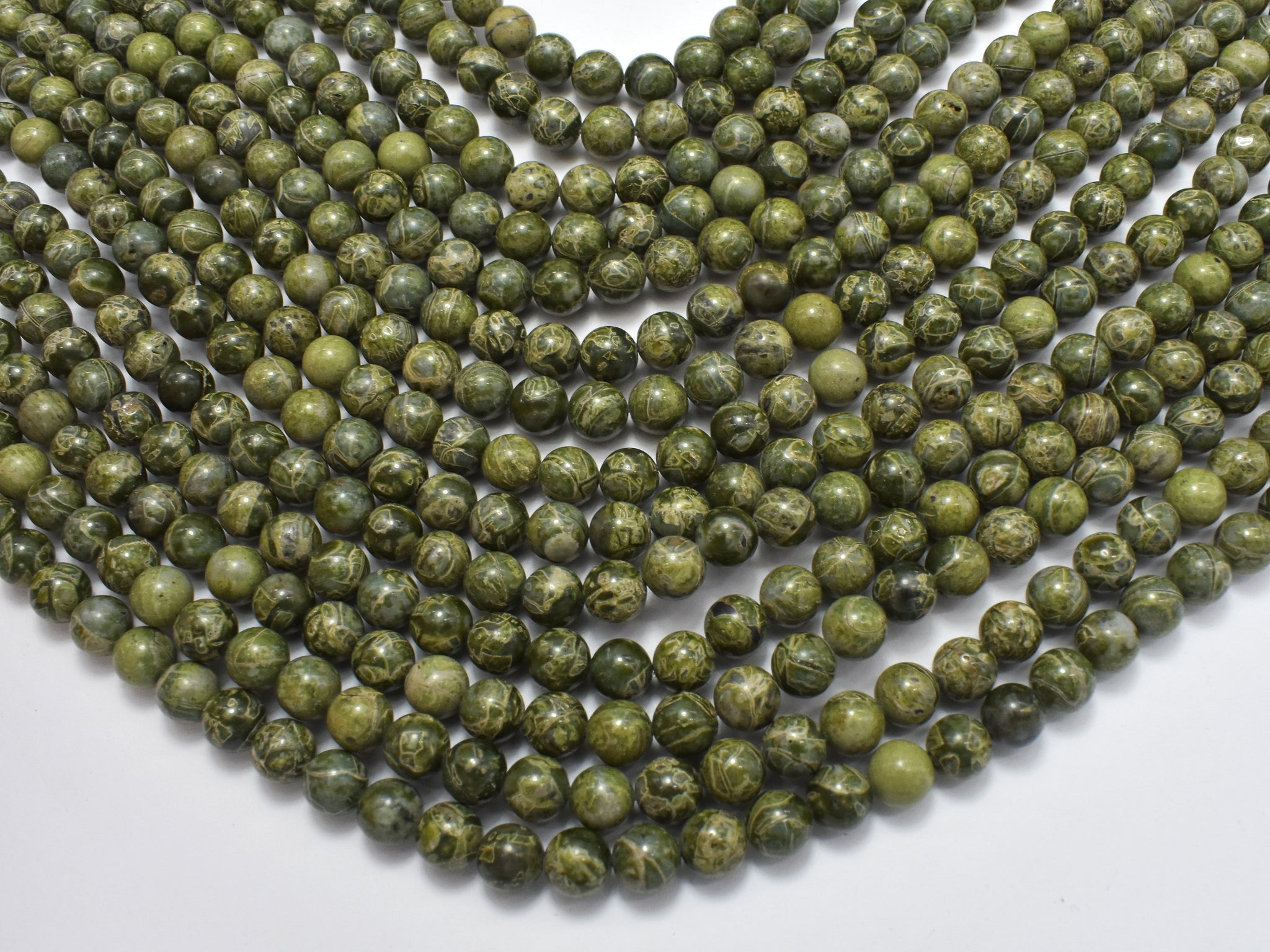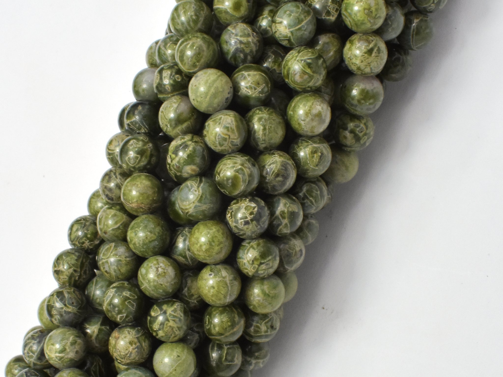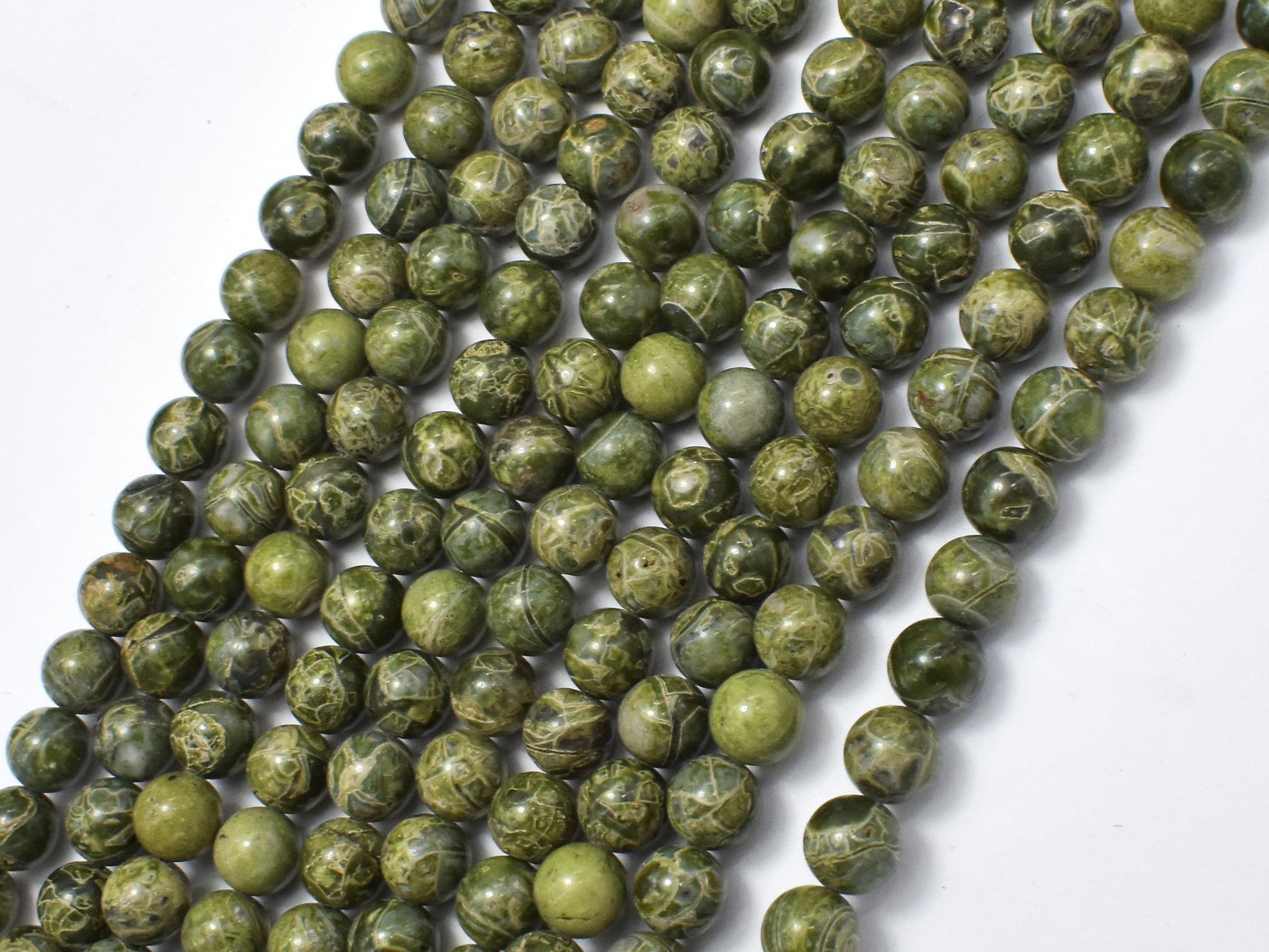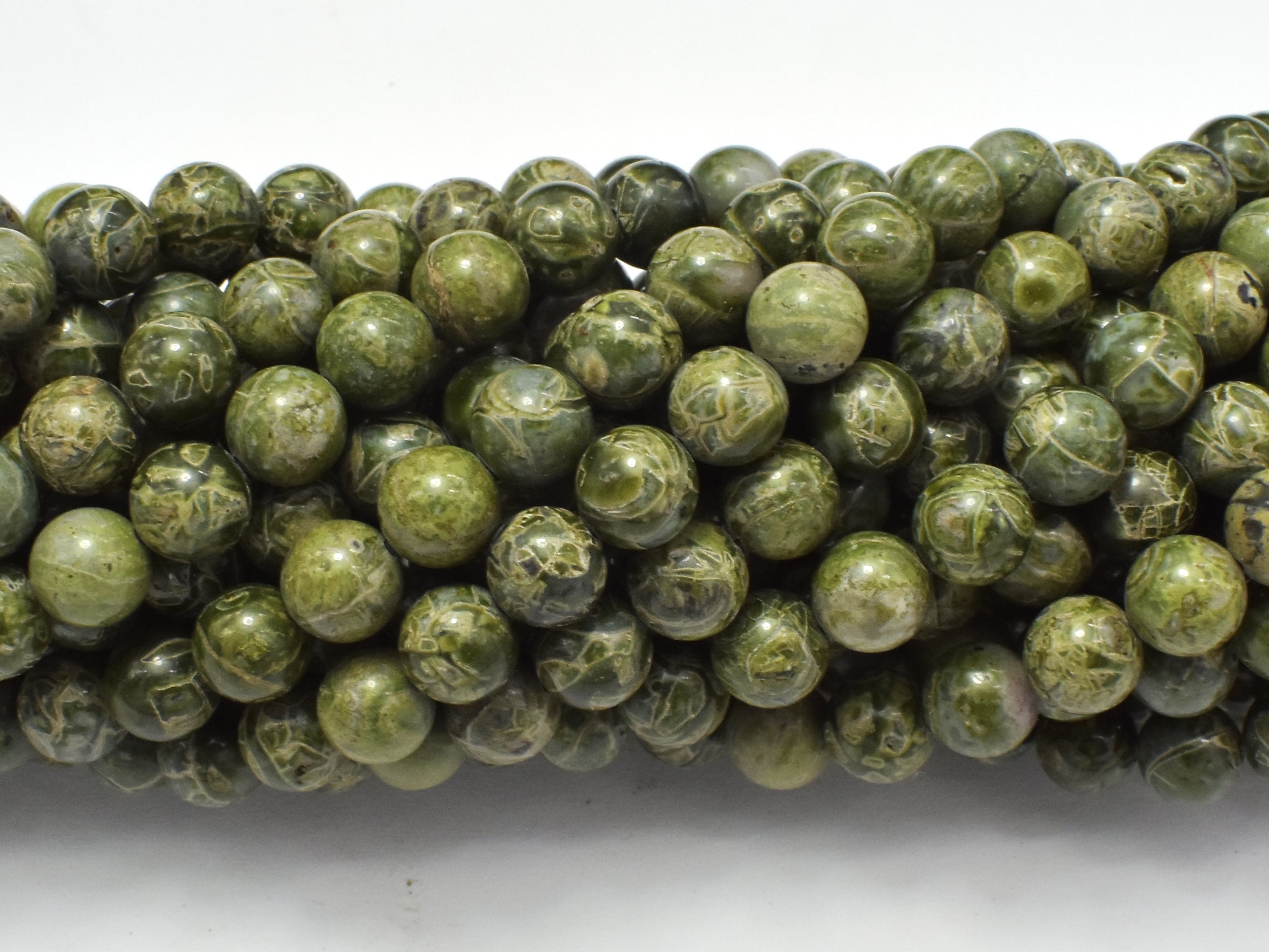 Alligator Skin Jasper Beads, Green Brecciated Jasper, Round, 6mm