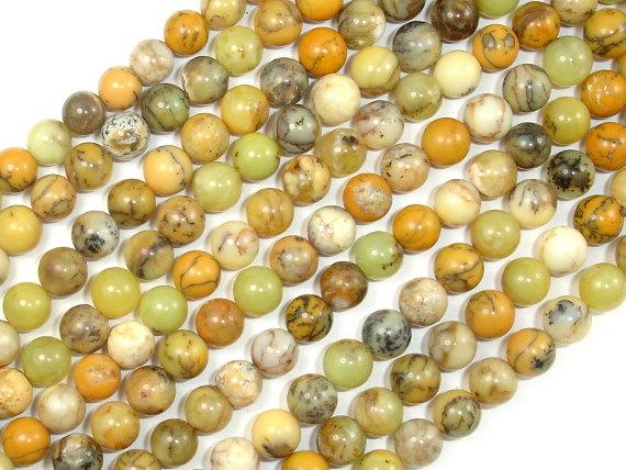 Dendritic Opal Beads, Yellow Moss Opal Beads, 6mm Round Beads