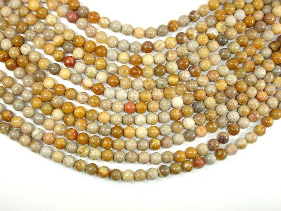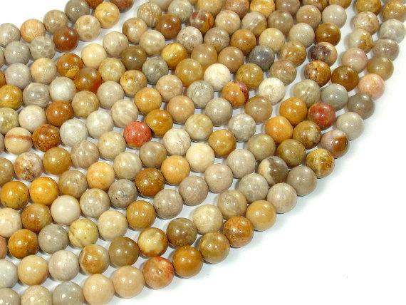 Fossil Coral Beads, 7mm, Round Beads