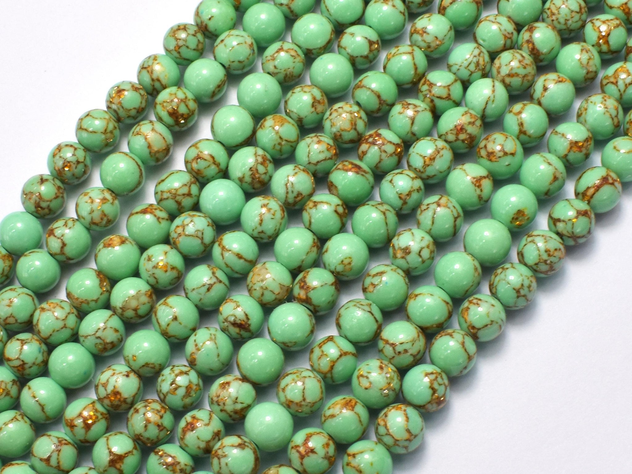 Howlite Turquoise - Green with Gold Line, 6mm (6.4mm)