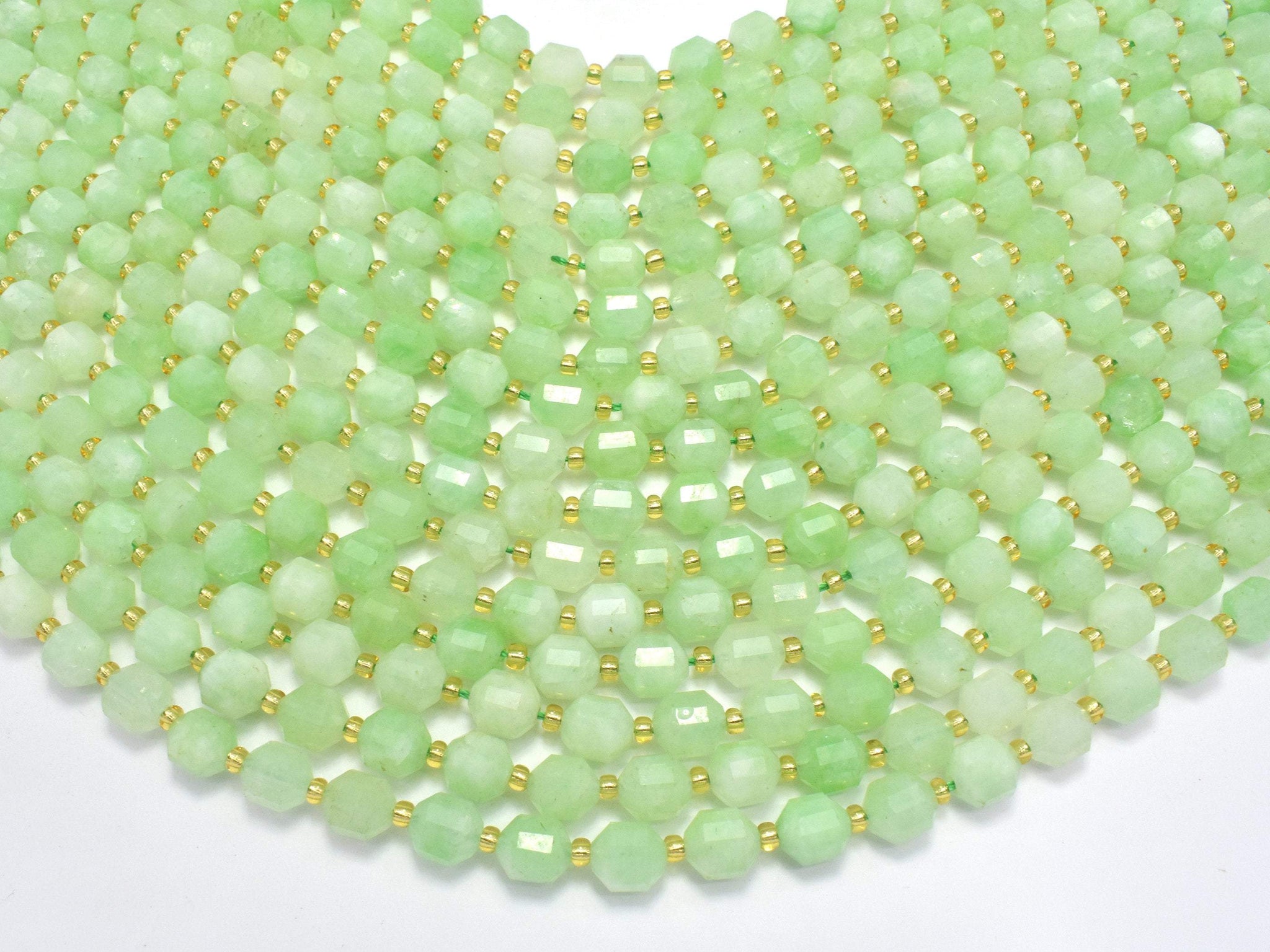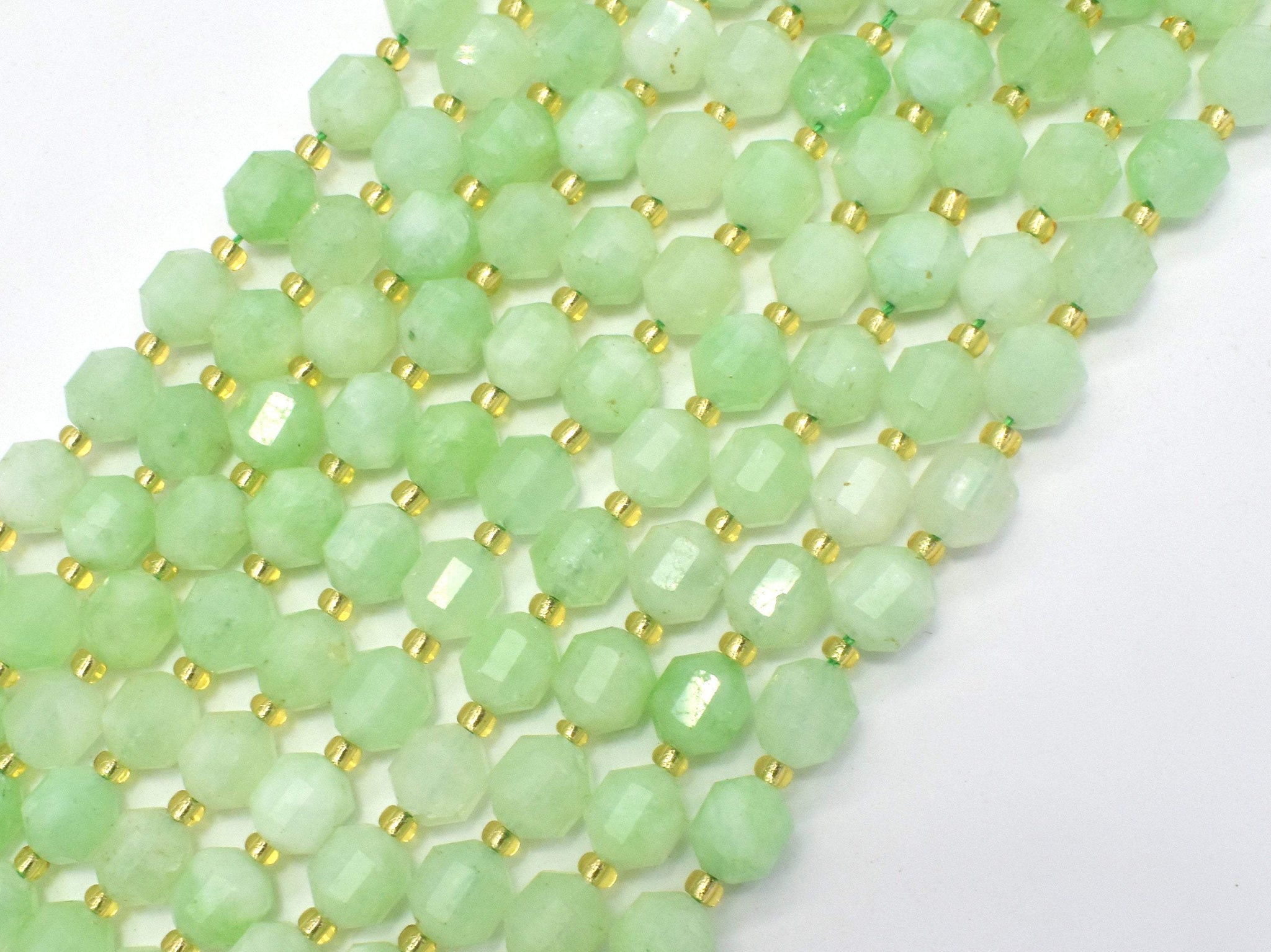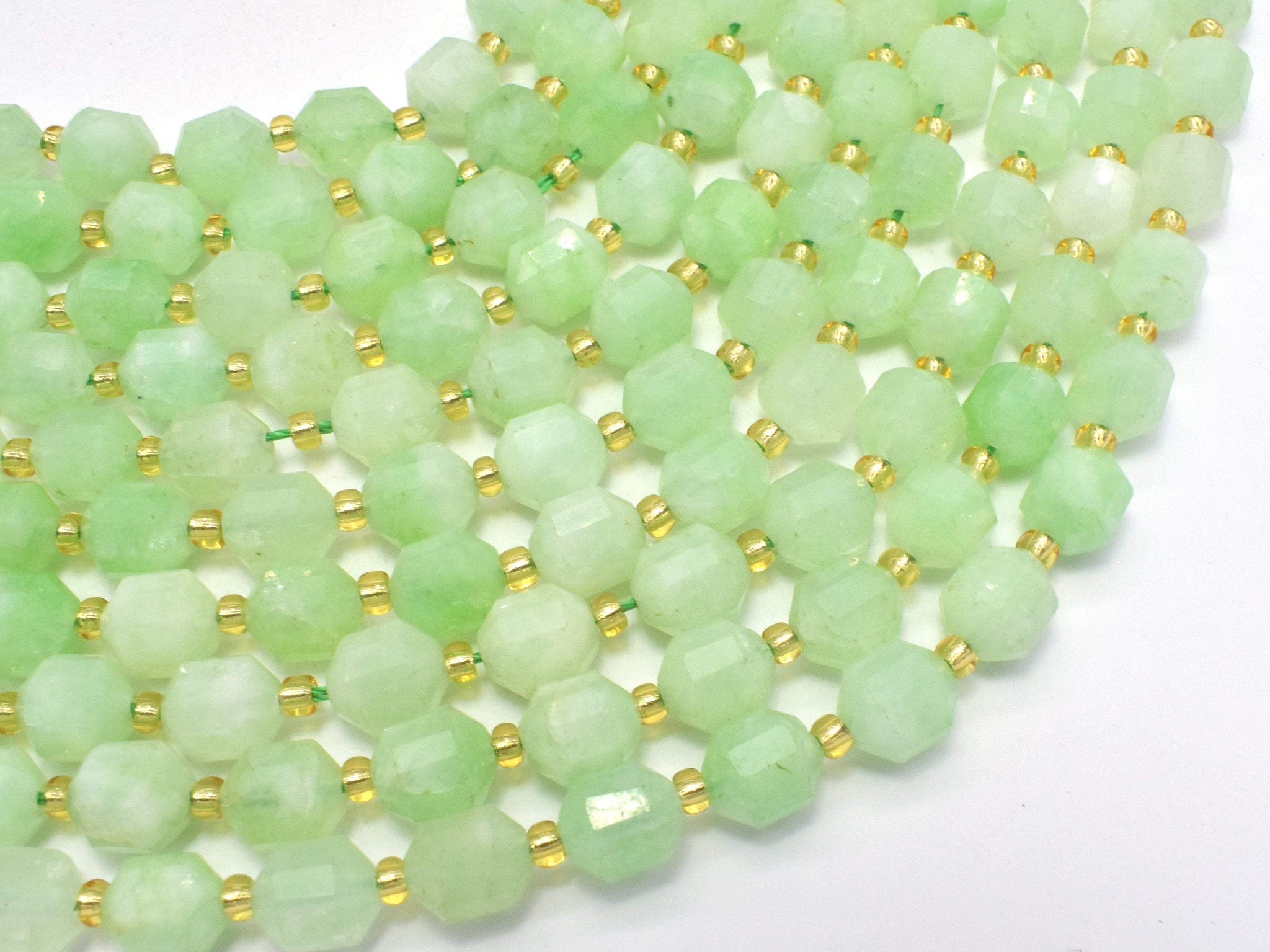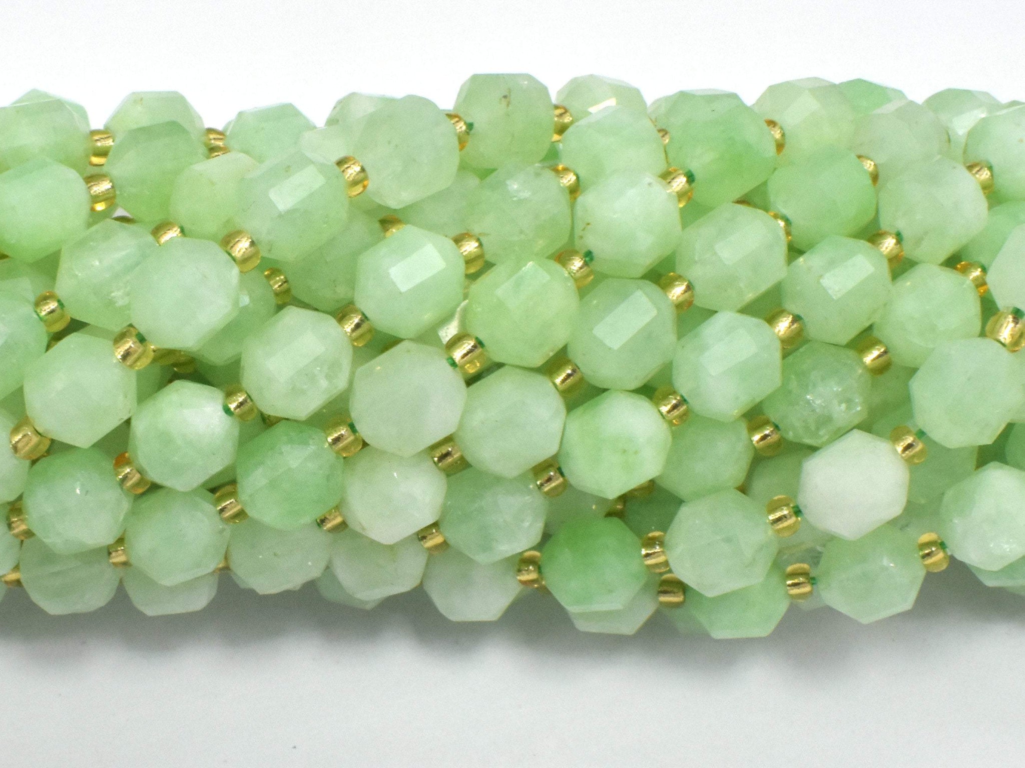 Green Quartz Beads, 8mm Faceted Prism Double Point Cut