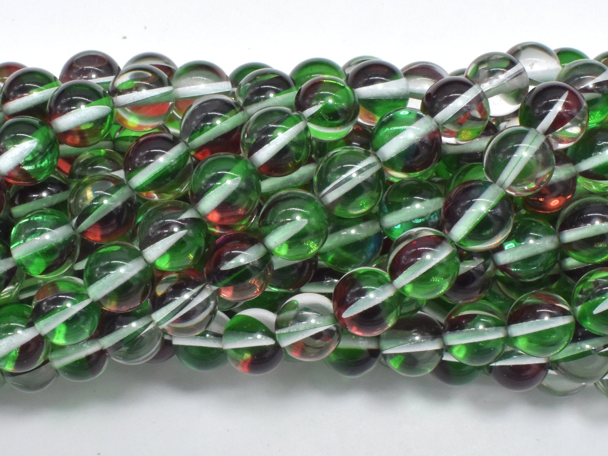 Mystic Aura Quartz-Red, Green, 8mm, Round, 14.5 Inch