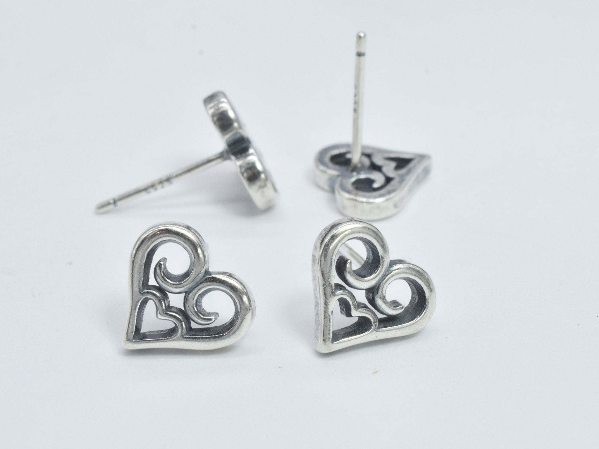 2pcs (1pair) 925 Sterling Silver Heart Earring Stud Post, 9.6x8.8mm Heart, 11mm Long