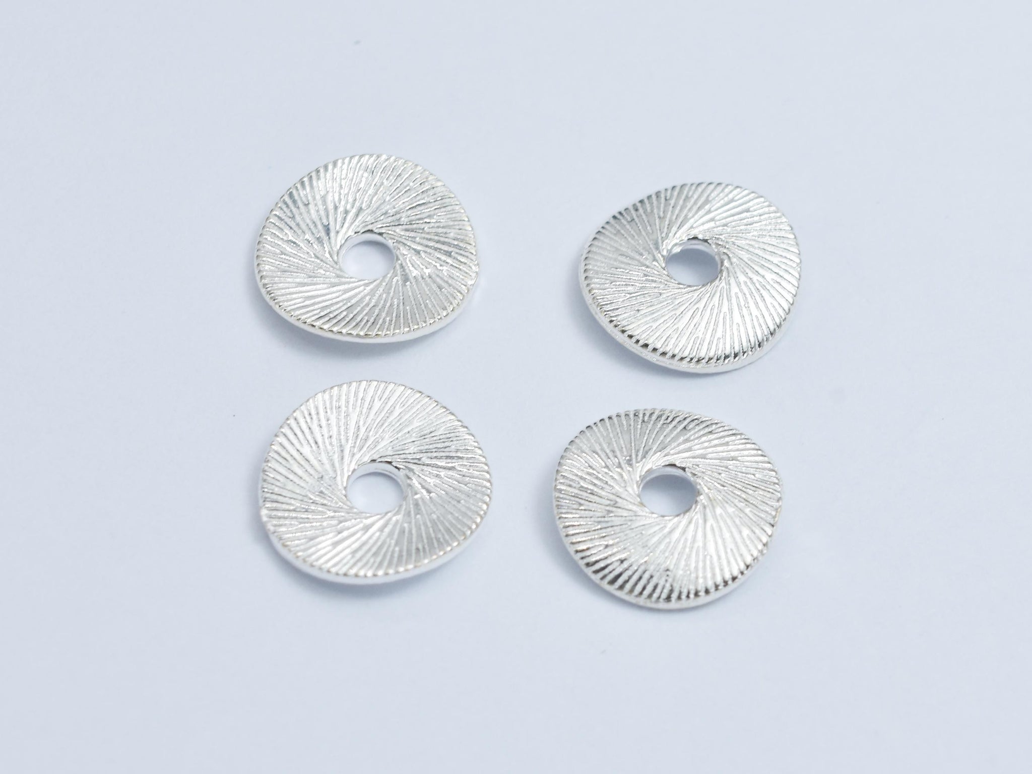 2pcs 925 Sterling Silver Beads, 9.7mm Wavy Coin Beads