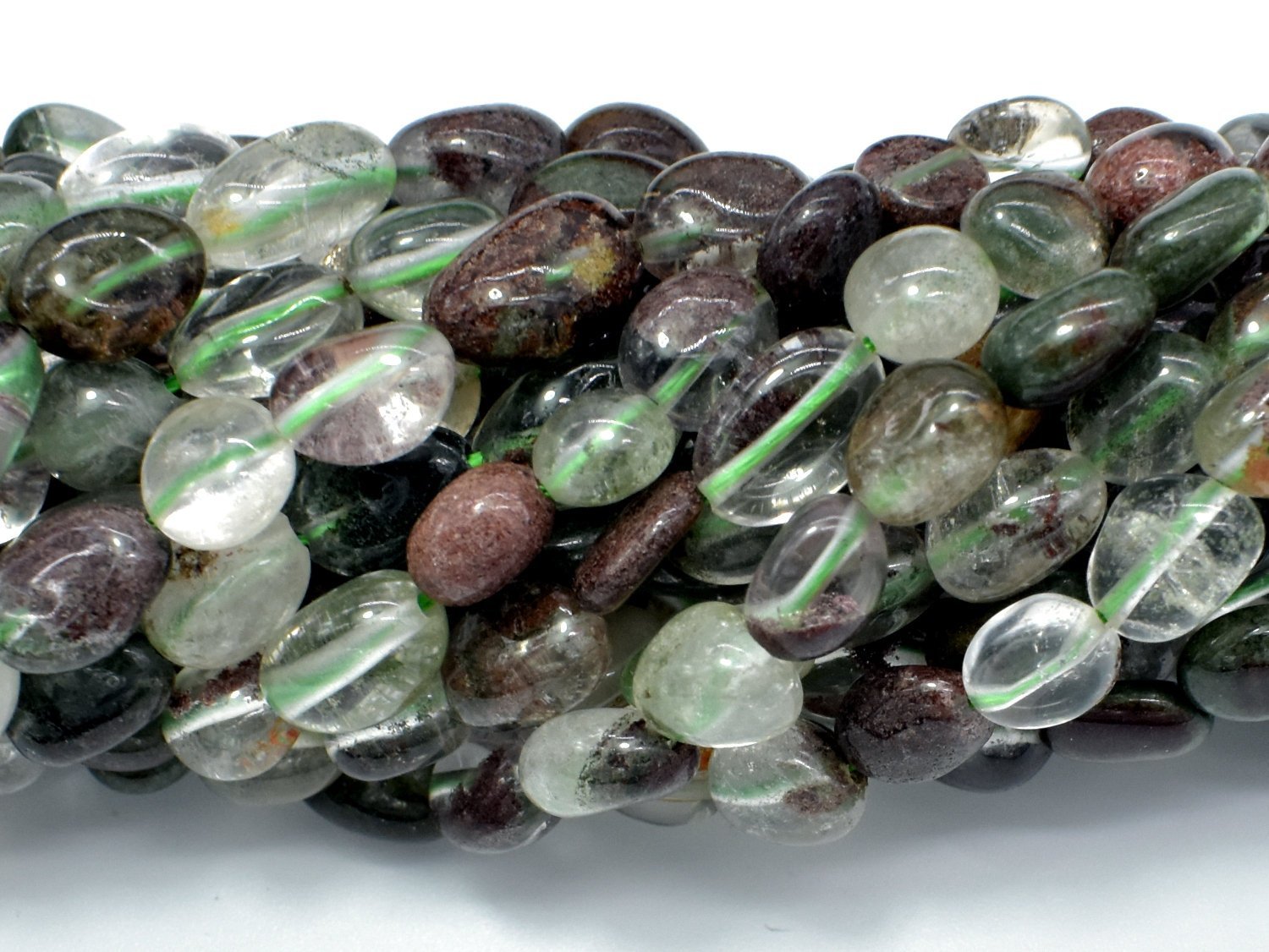 Phantom Quartz, Lodolite Quatz, Approx. 6x8mm Nugget Beads