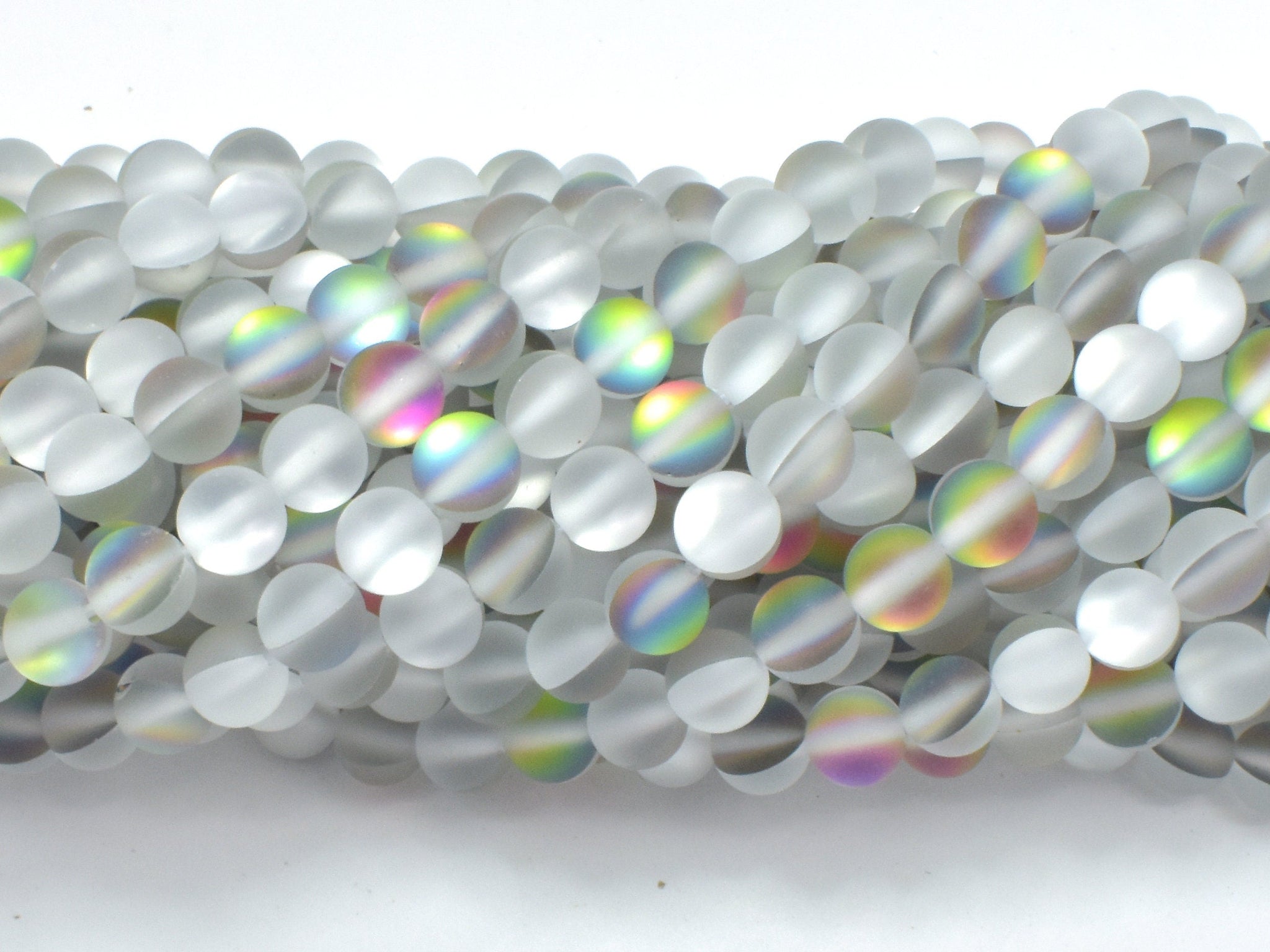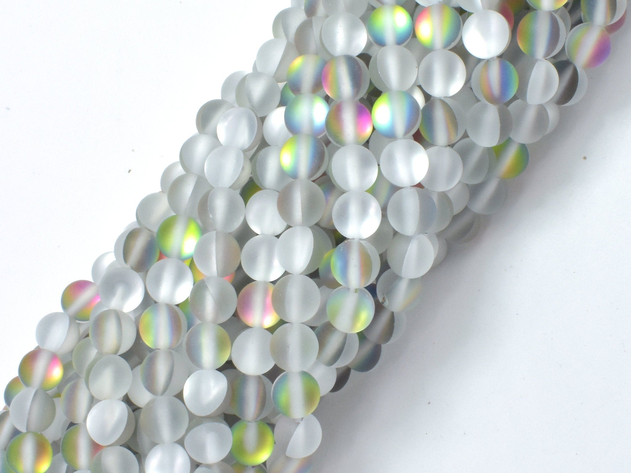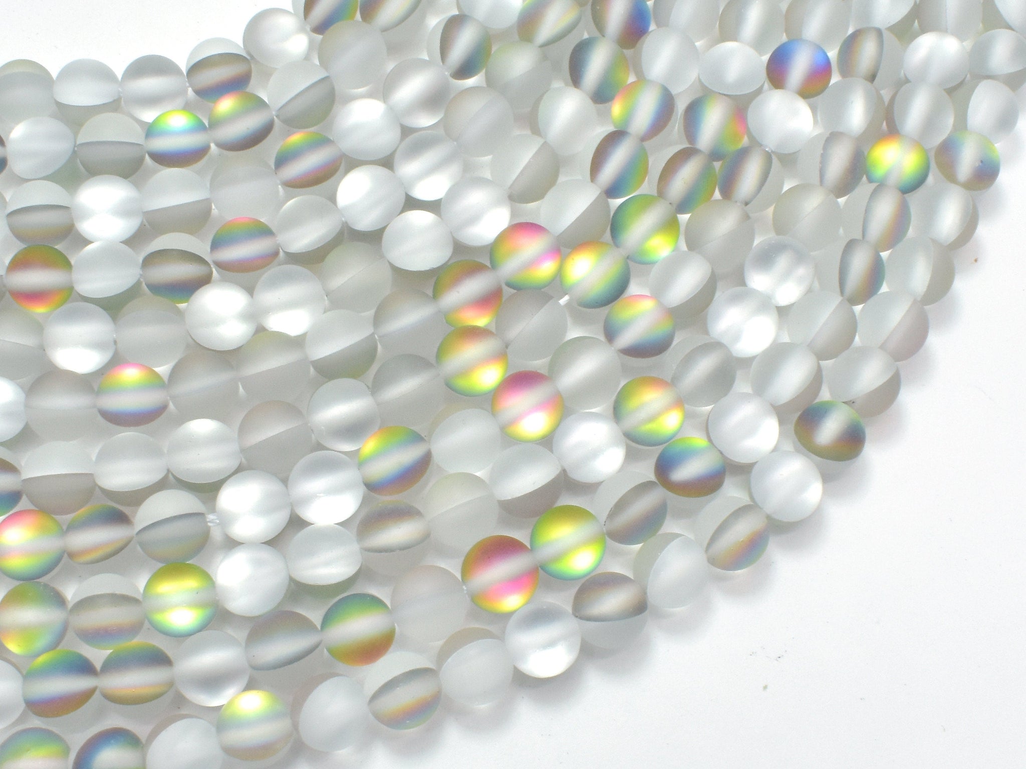 Please note: Mystic Aura Quartz-man made crystal, features a wonderful AB luster (one side is silver, another side is rainbow) inside the beads.