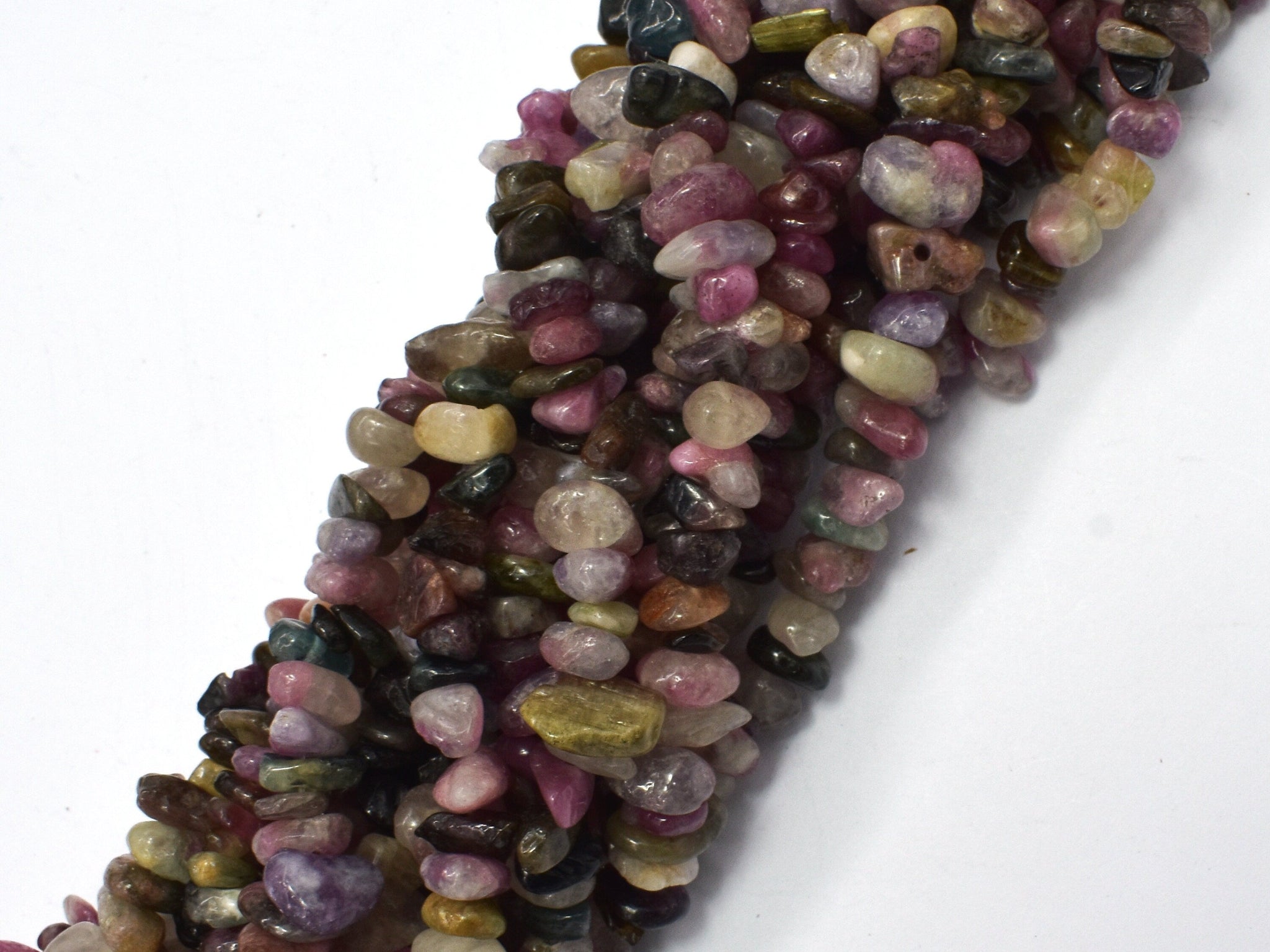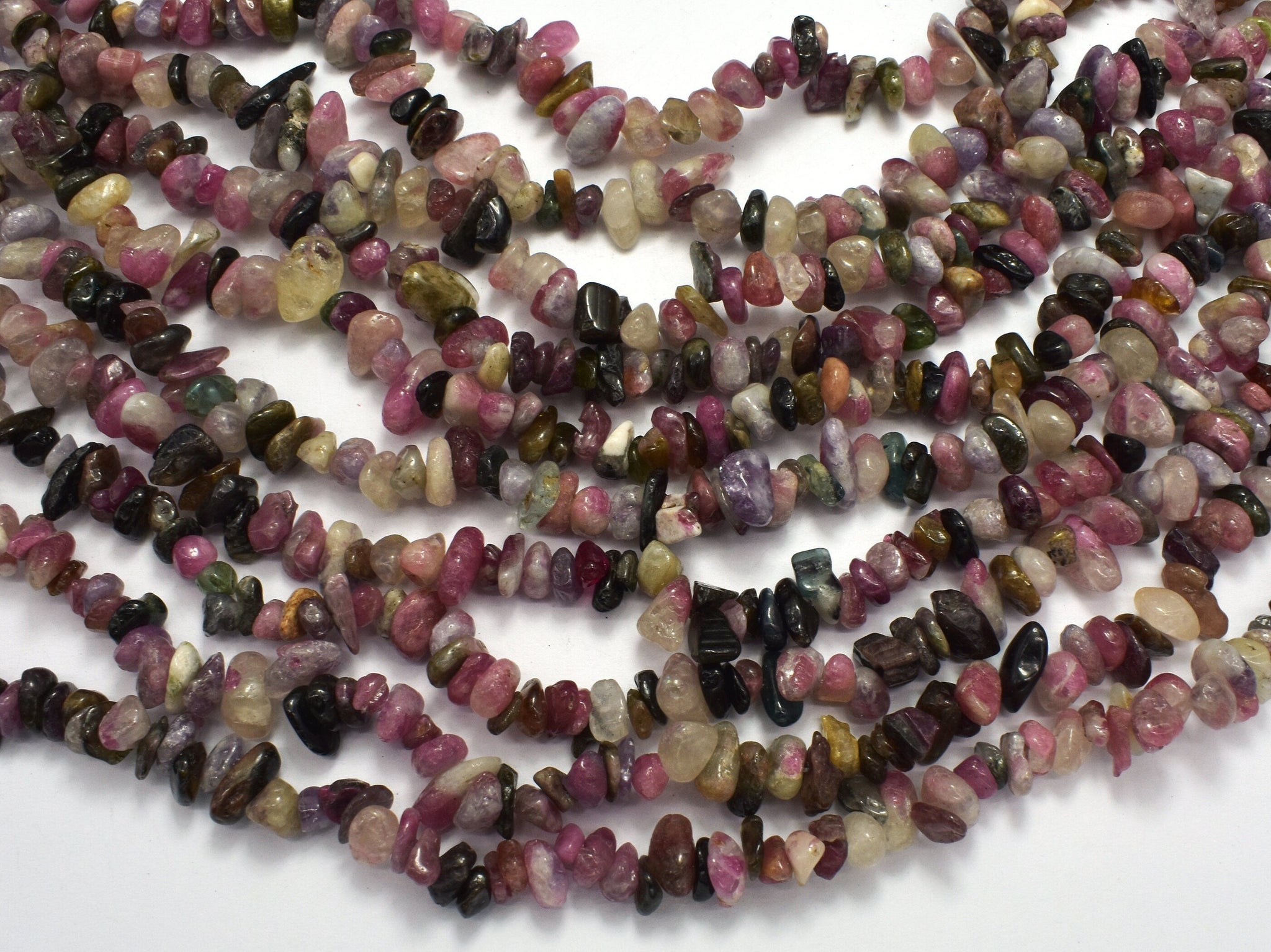 Watermelon Tourmaline, 4mm - 9mm Chips Beads, 33 Inch