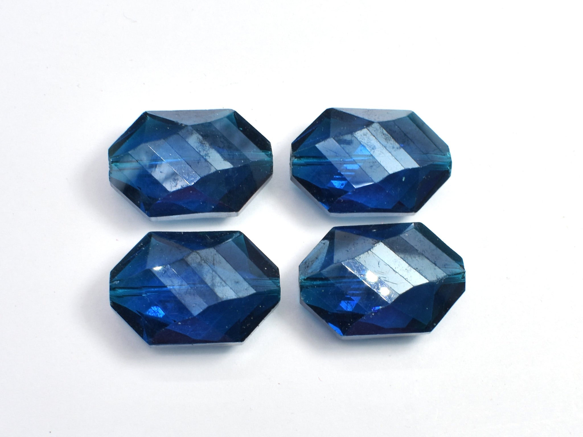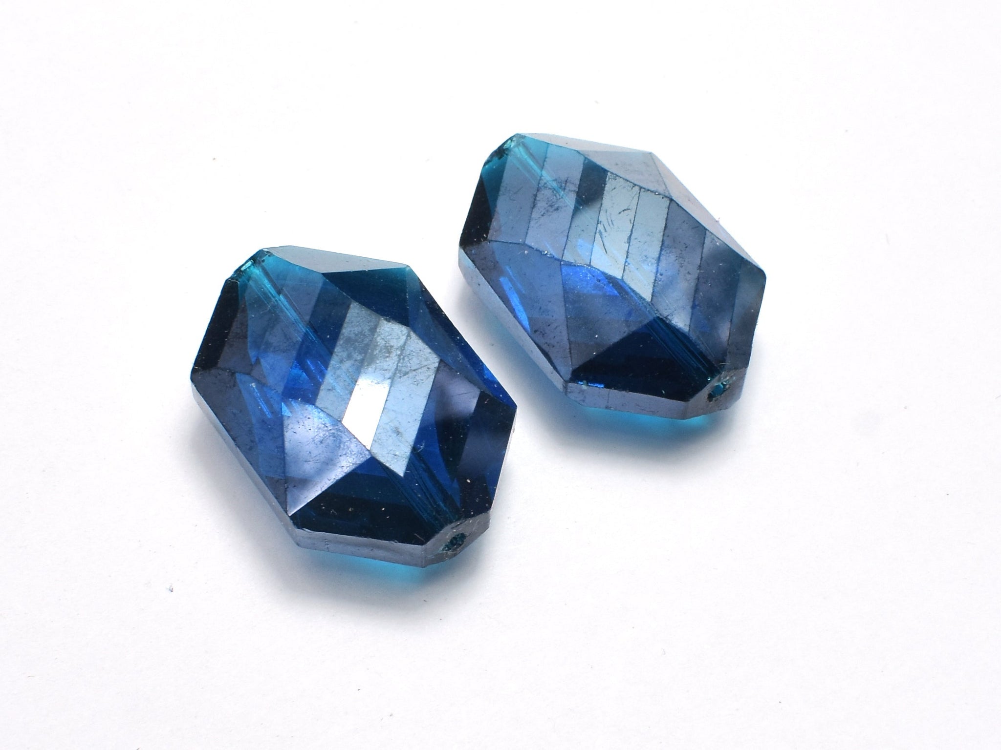 Crystal Glass 17x25mm Faceted Irregular Hexagon Beads, Dark Blue, 2pieces