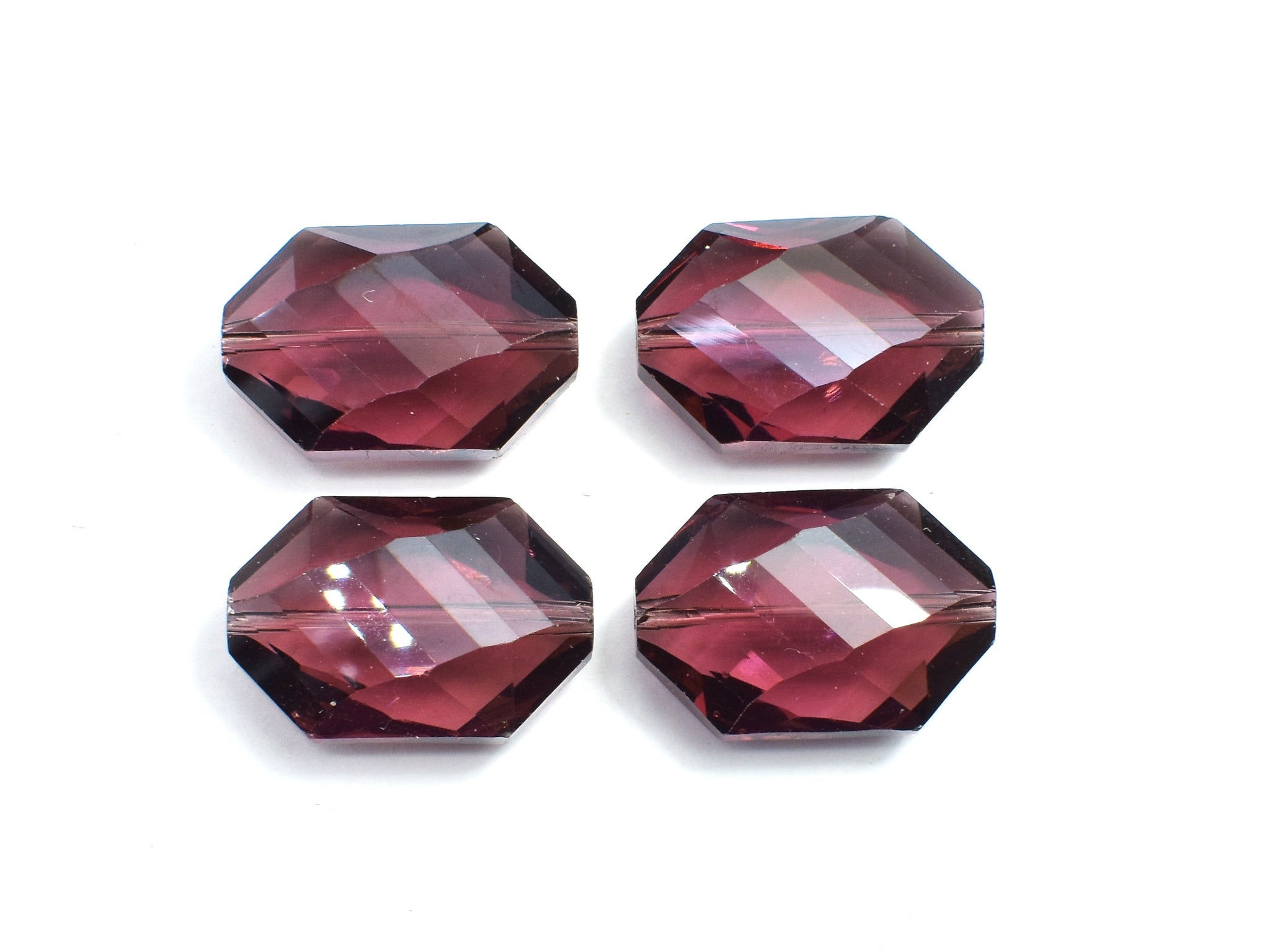 Crystal Glass 17x25mm Faceted Irregular Hexagon Beads, Wine Red, 2pieces