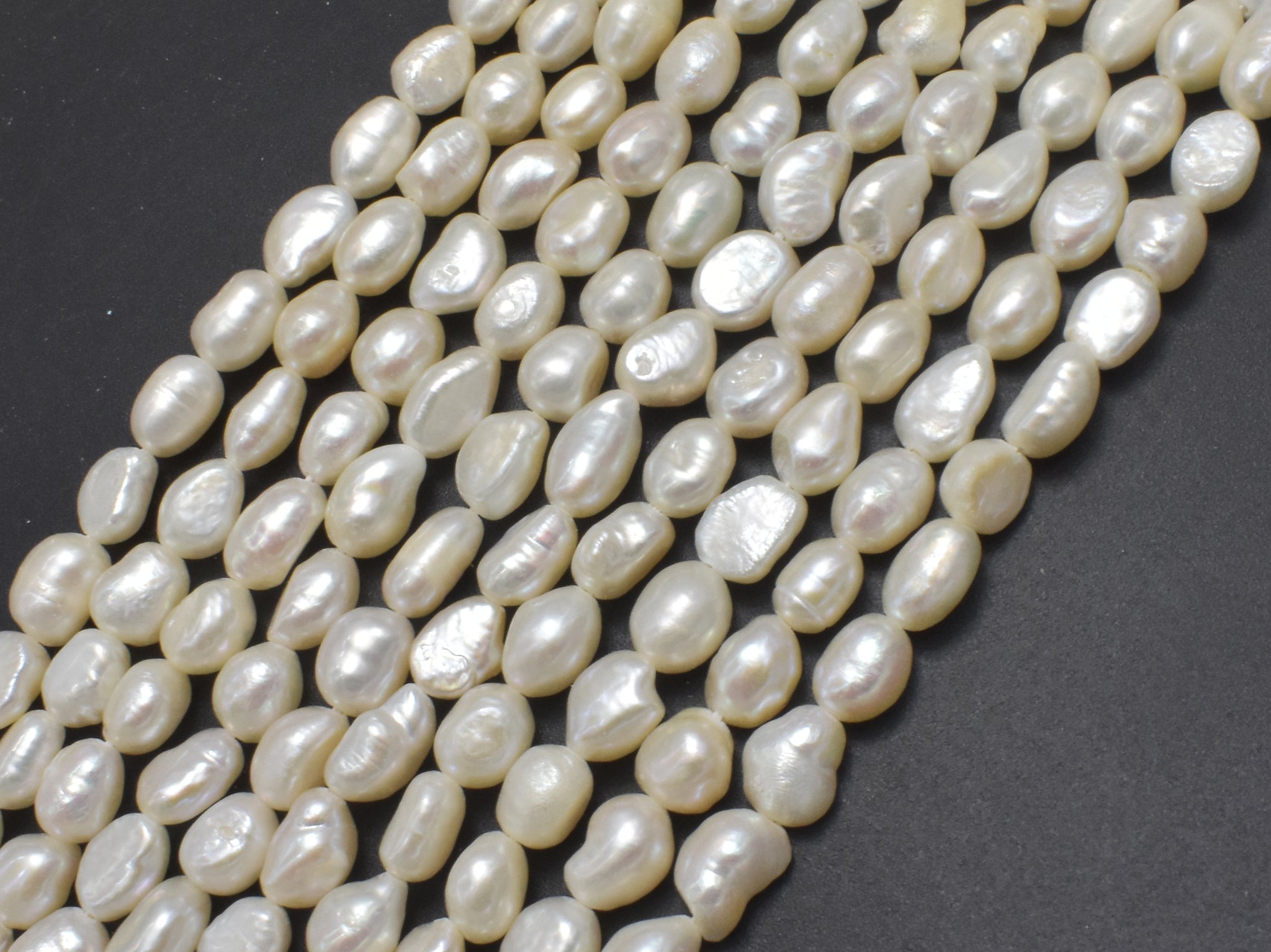 Name: Fresh Water Pearl Shape: Nugget Size: Approx. 7x9 mm, 14 Inch, Full strand, Approx. 40 beads, Hole 0.6 mm Color: White