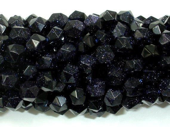 Blue Goldstone Beads, 8mm (7.5mm) Star Cut Faceted Round
