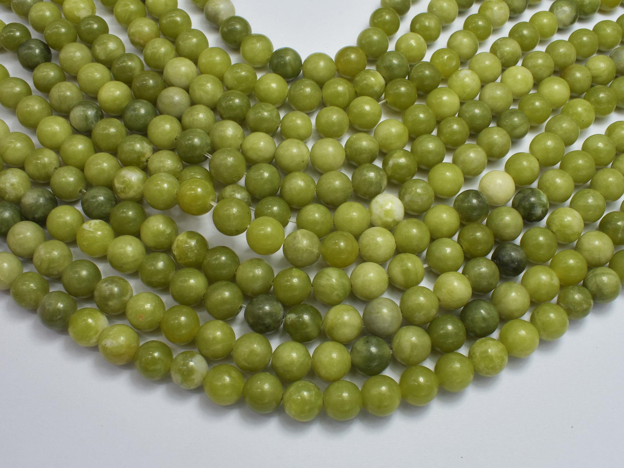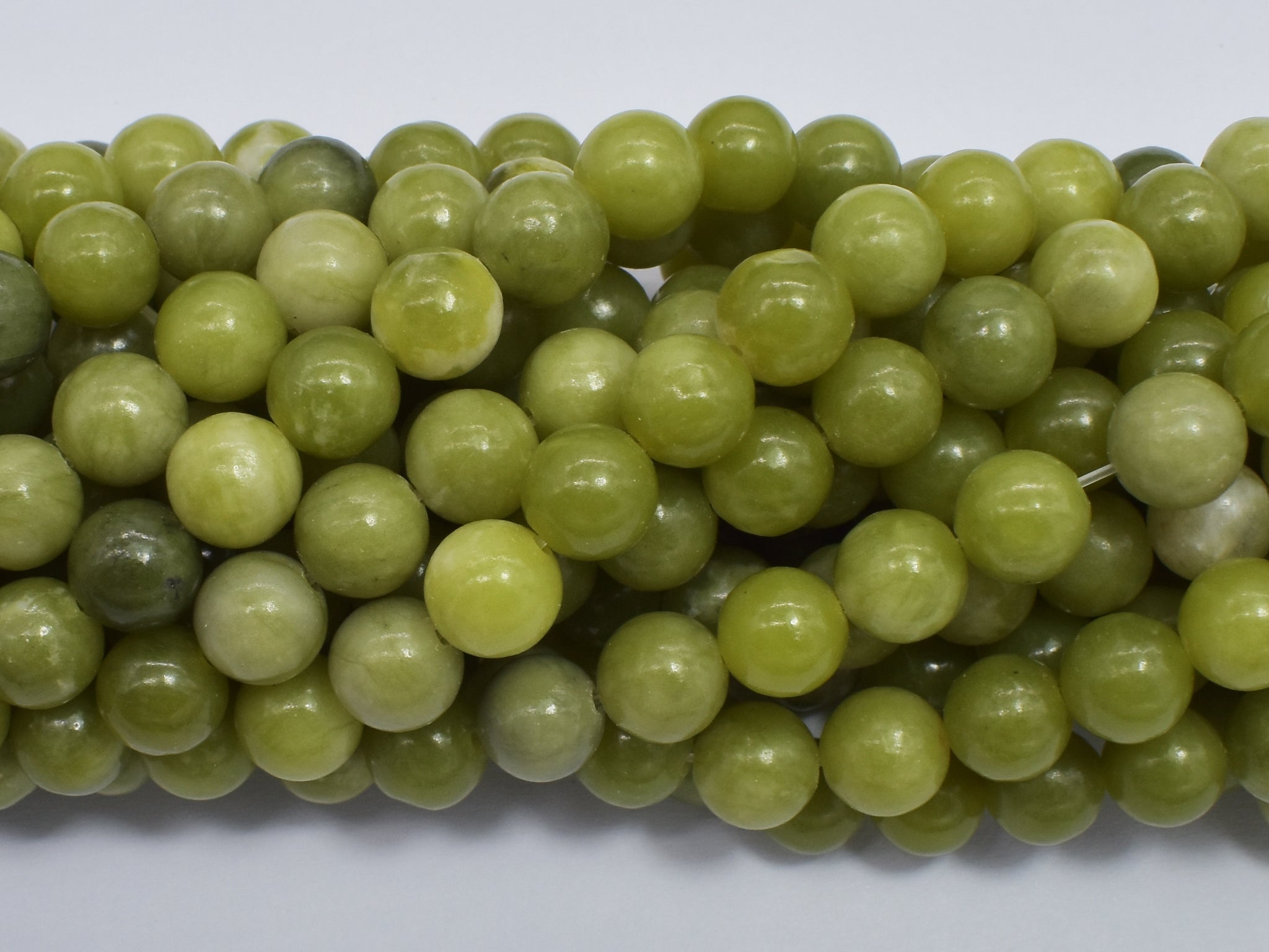 Name: Chinese Jade Shape: Round Size: Approx. 8mm (8.6mm), 15 Inch, Full strand, Approx. 45 beads, Hole 1mm Color: Green Quality: A