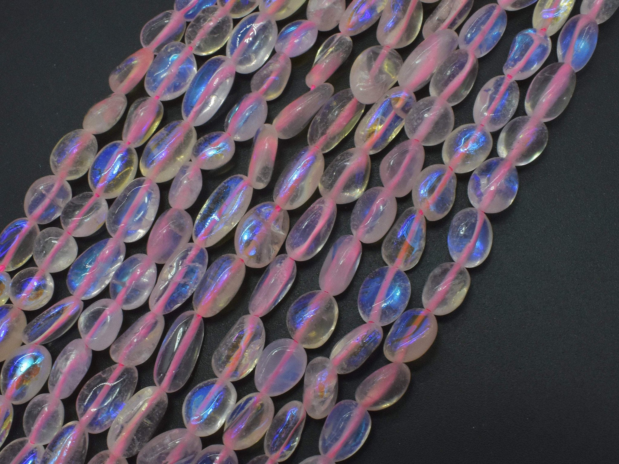 Mystic Coated Rose Quartz, AB Coated, 6x9mm Nugget