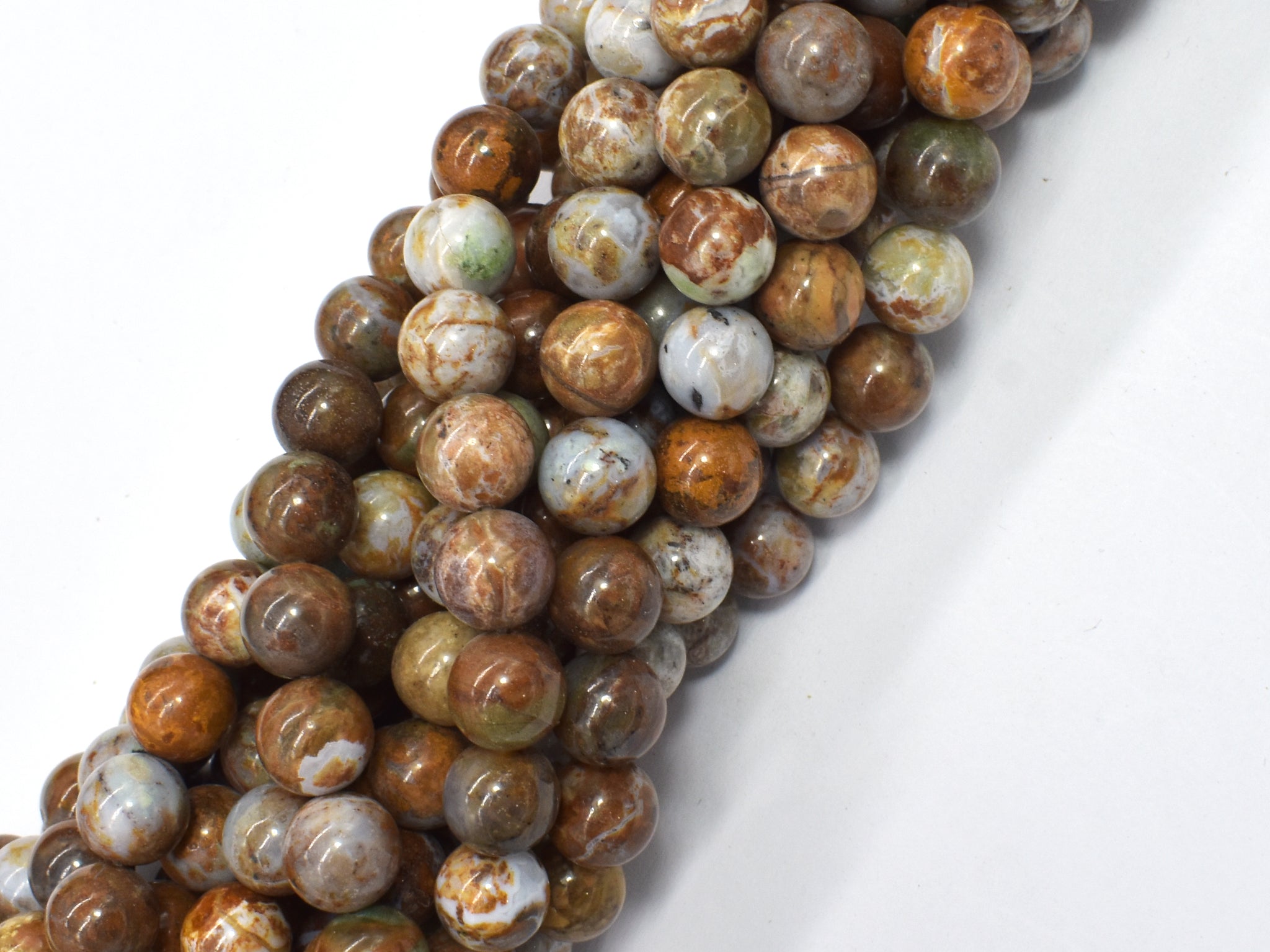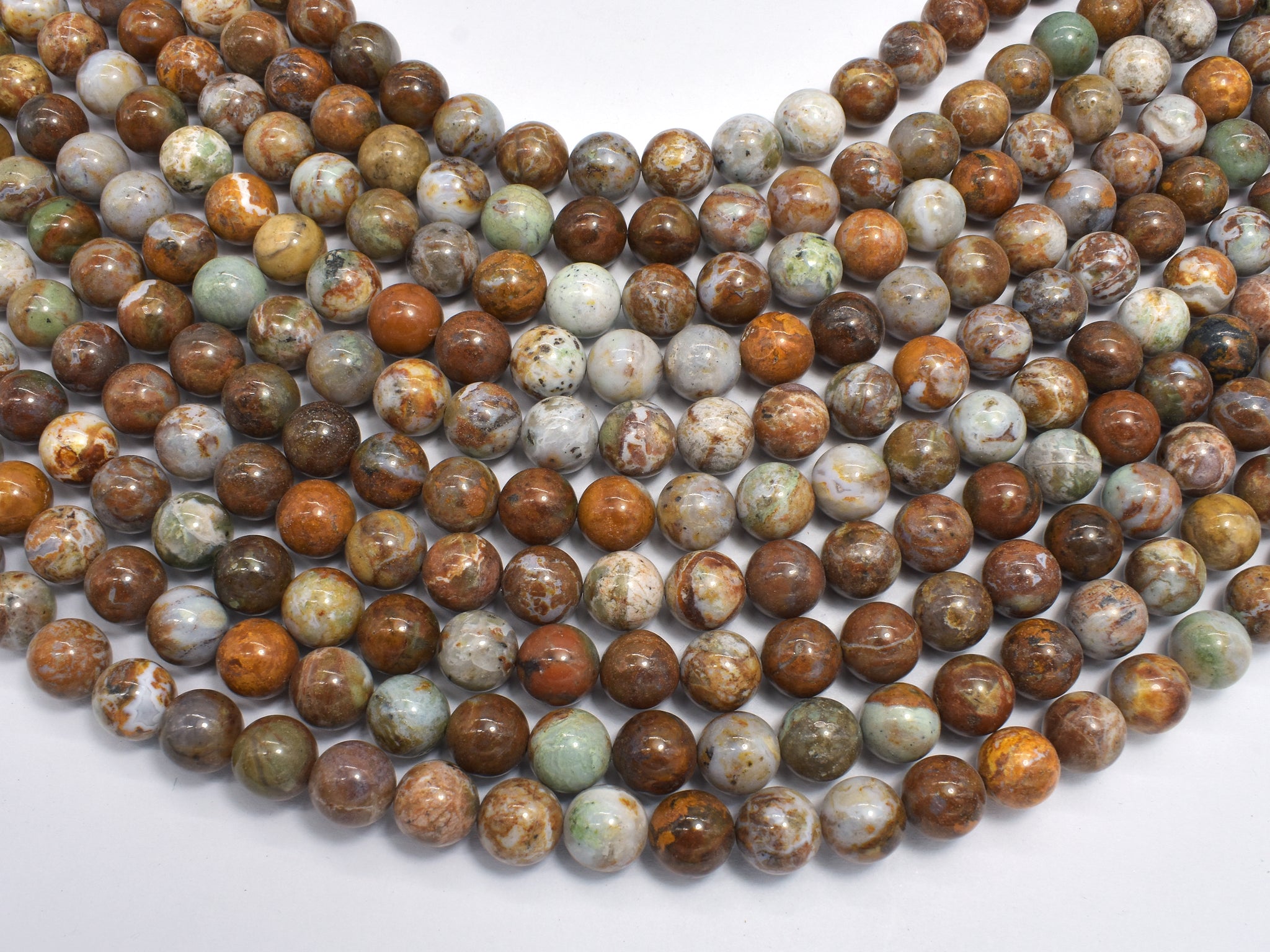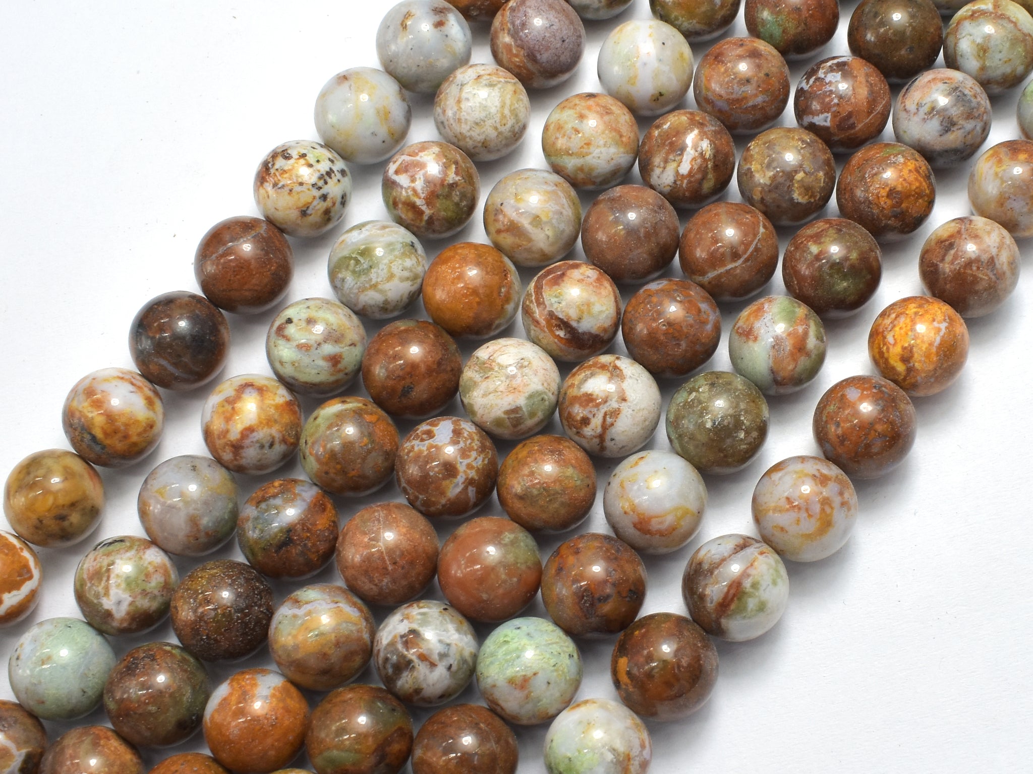 Name: African Green Opal Shape: Round Size: Approx. 10mm(10.3mm), 16 Inch, Full strand, Approx. 39 beads, Hole 1mm Color: Brown, Green Quality: A