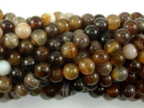 Banded Agate Beads, Brown, 8mm(8.4mm) Round