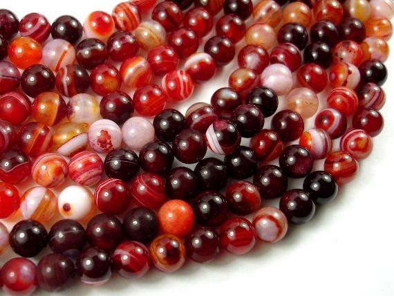 Banded Agate Beads, Red & White, 8mm Round