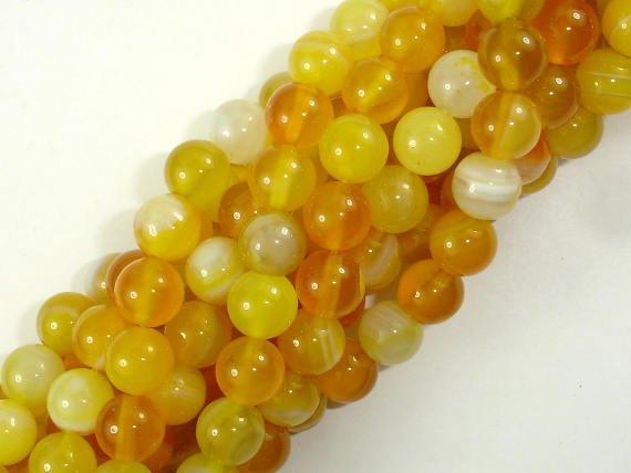 Banded Agate Beads, Yellow, 8mm Round Beads