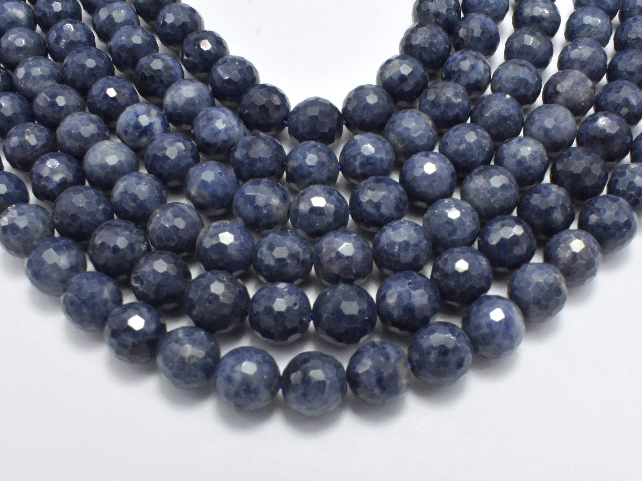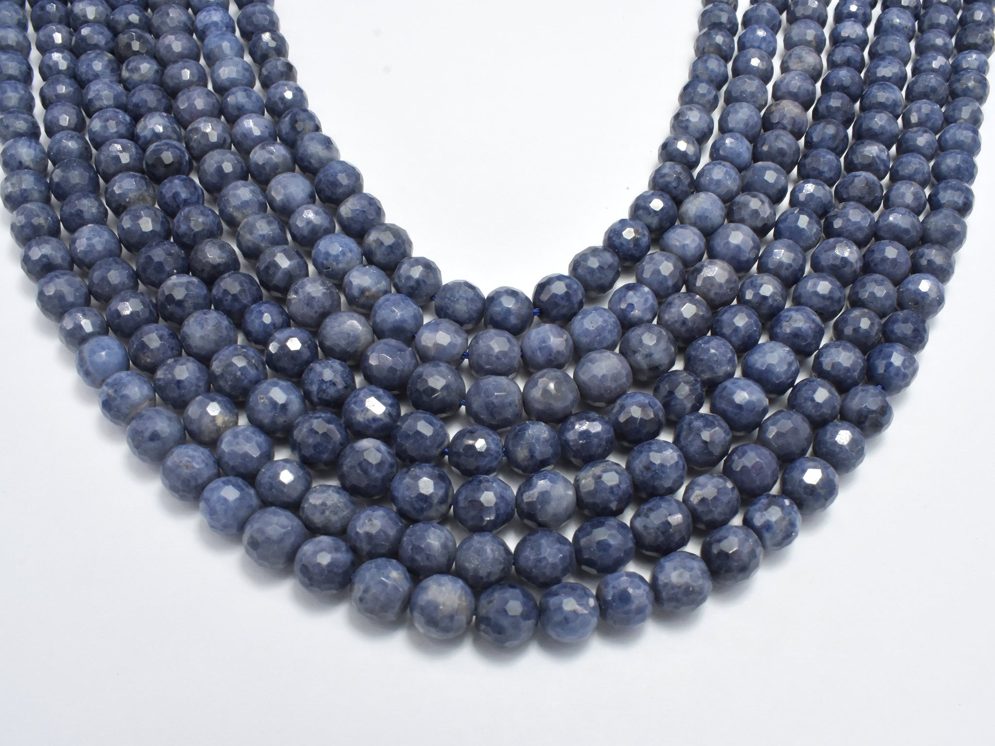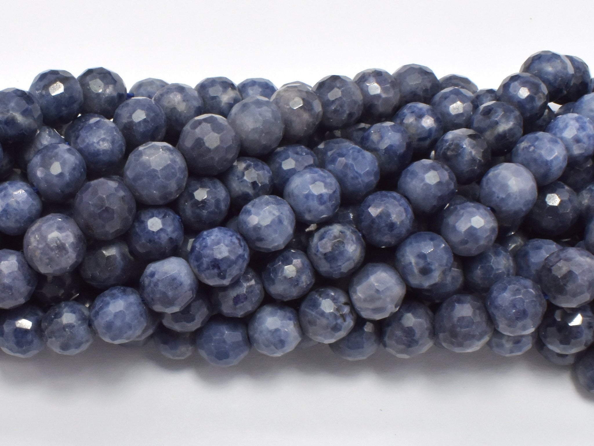 Blue Sapphire Beads, 6mm (6.4mm) Faceted Round, 18 Inch