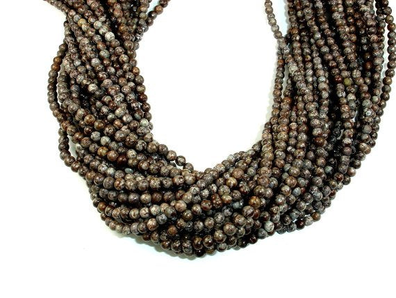 Name: Snowflake Obsidian Shape: Round Size: Approx. 4mm (4.5mm), 15 Inch, Full strand, Approx. 85 beads, Hole 0.8mm Color: Brown