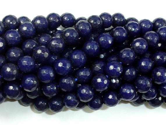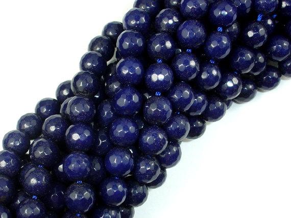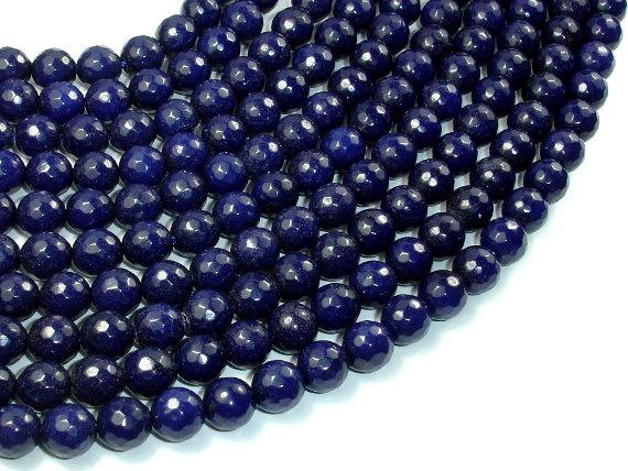 Dark Blue Jade Beads, 8mm Faceted Round Beads