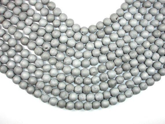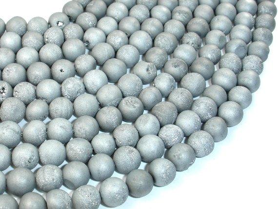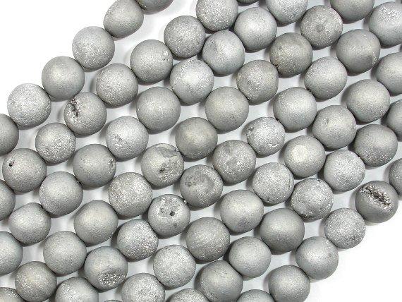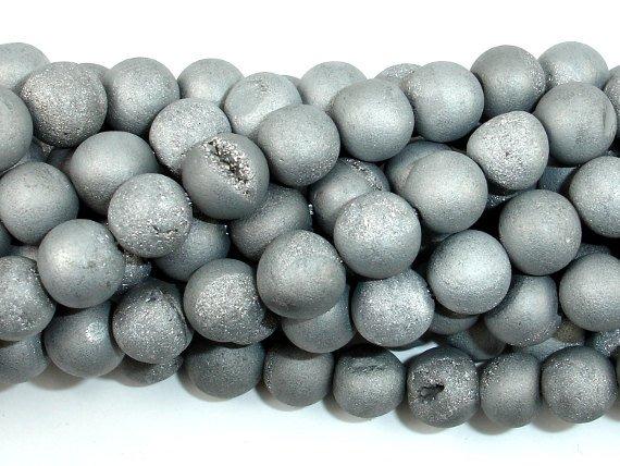 Druzy Agate Beads, Silver Gray Geode Beads, 8mm Round Beads