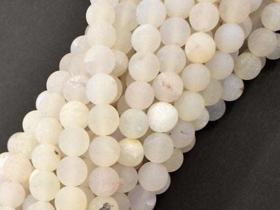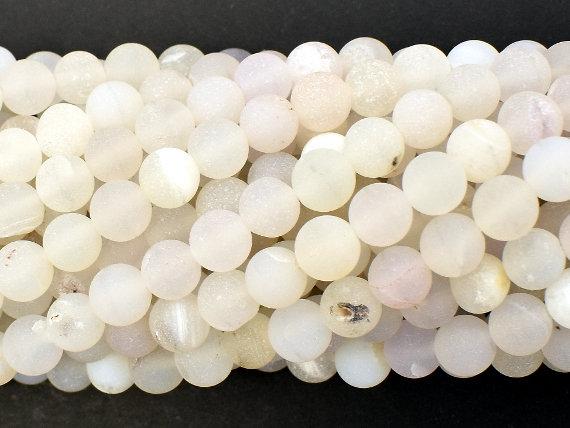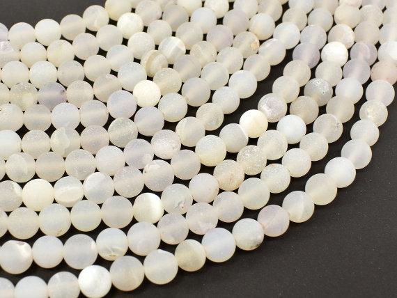 Druzy Agate Beads, White Geode Agate Beads, 6mm Round Beads