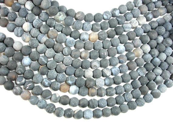 Frosted Matte Agate - Gray, 8mm Round Beads