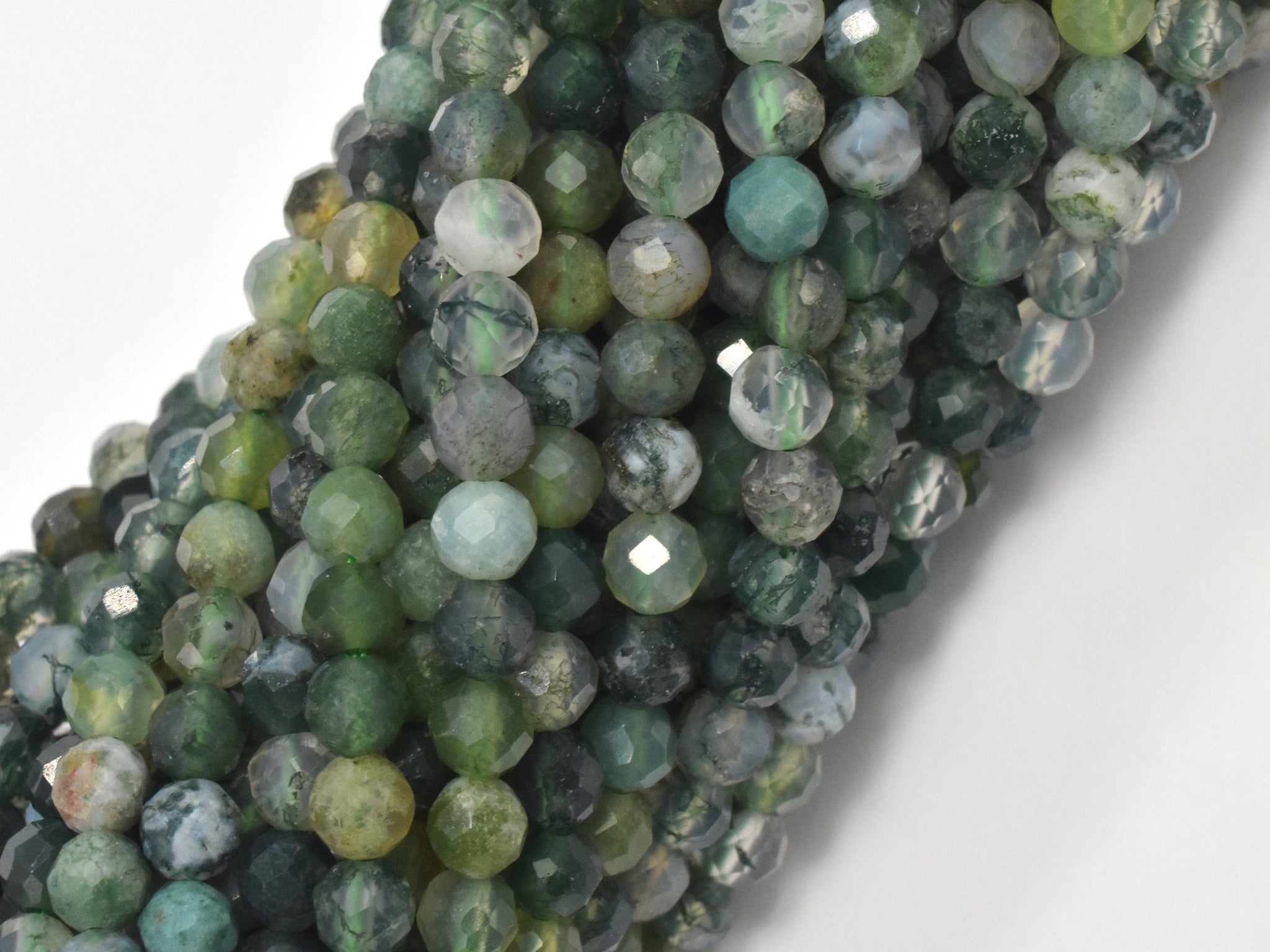 Moss Agate Beads, 3.6mm Micro Faceted Round