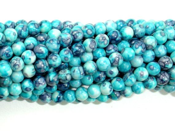 Rain Flower Stone Beads, Blue, 4mm Round Beads