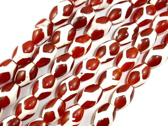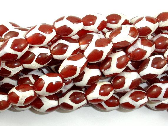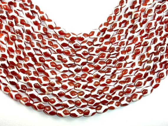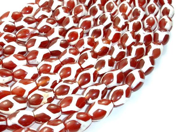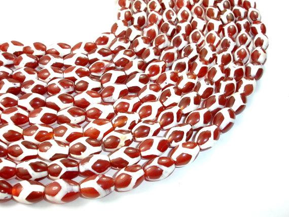 Tibetan Agate Beads, Red, Rice, 10mm x 14mm
